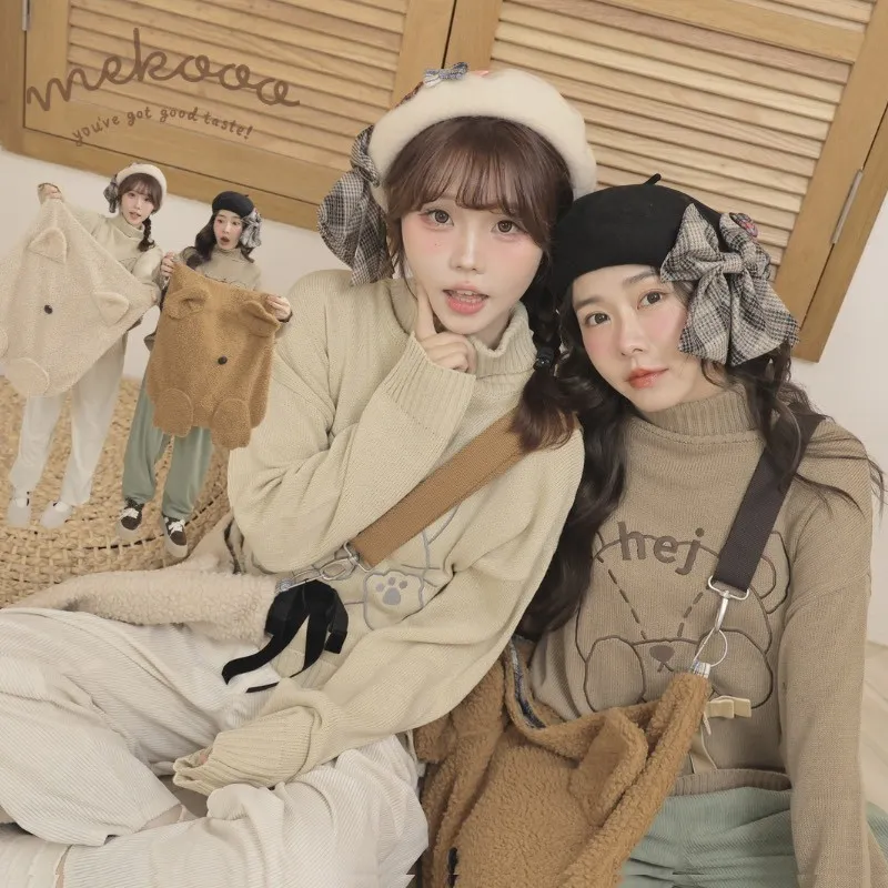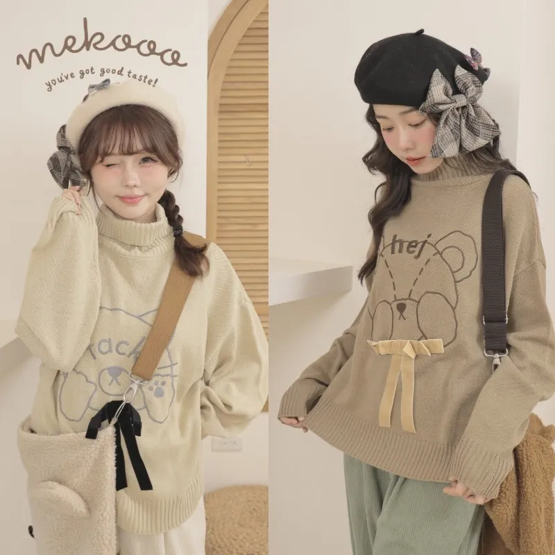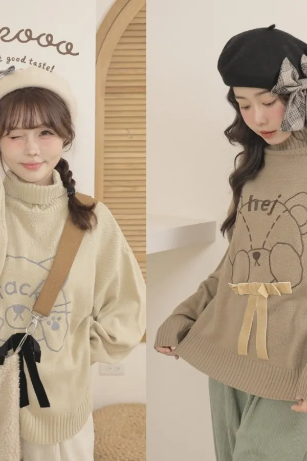 2️⃣ 刺繡高領針織上衣(熊熊/貓咪圖案)