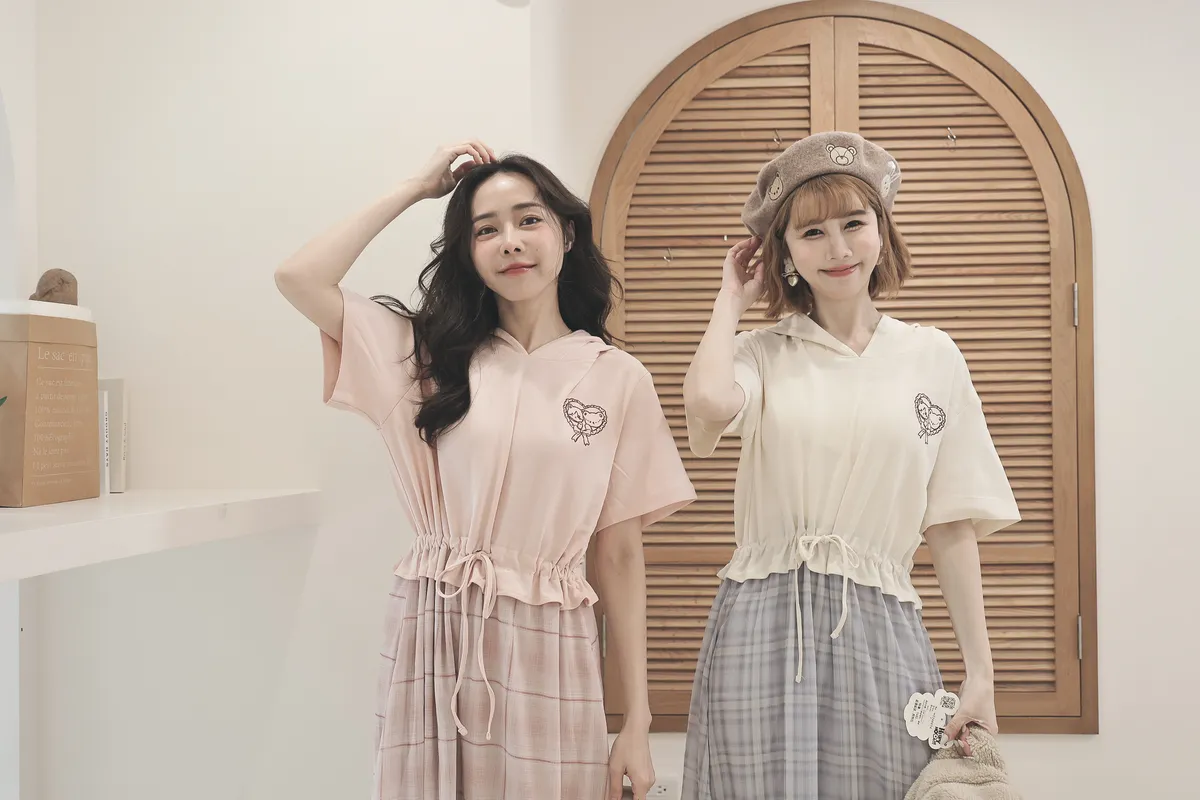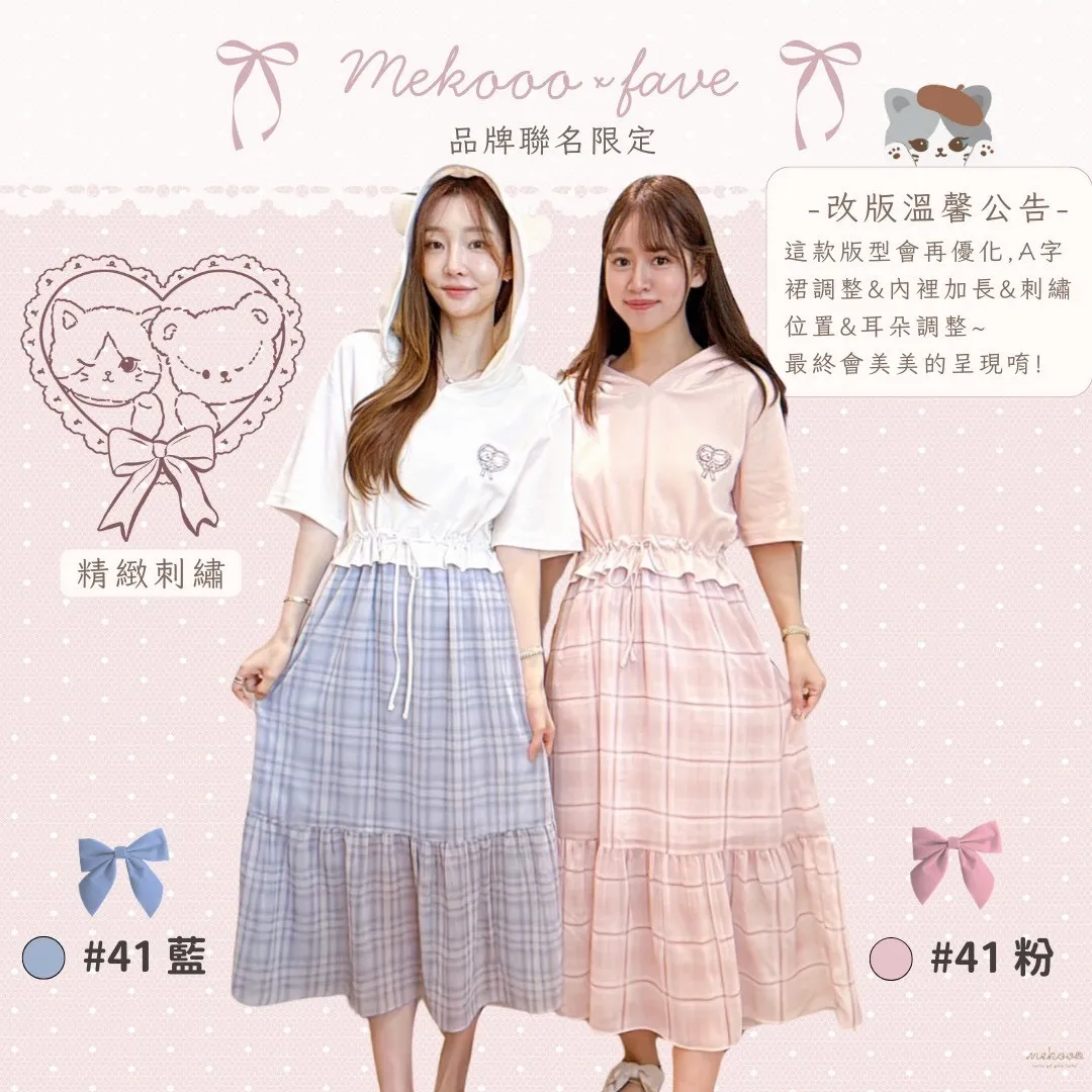 【FAVE X Mekooo】朵喵喵x米果熊愛心刺繡連帽洋裝