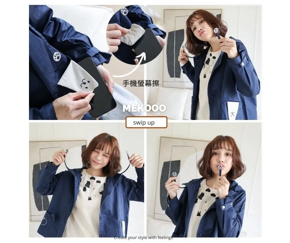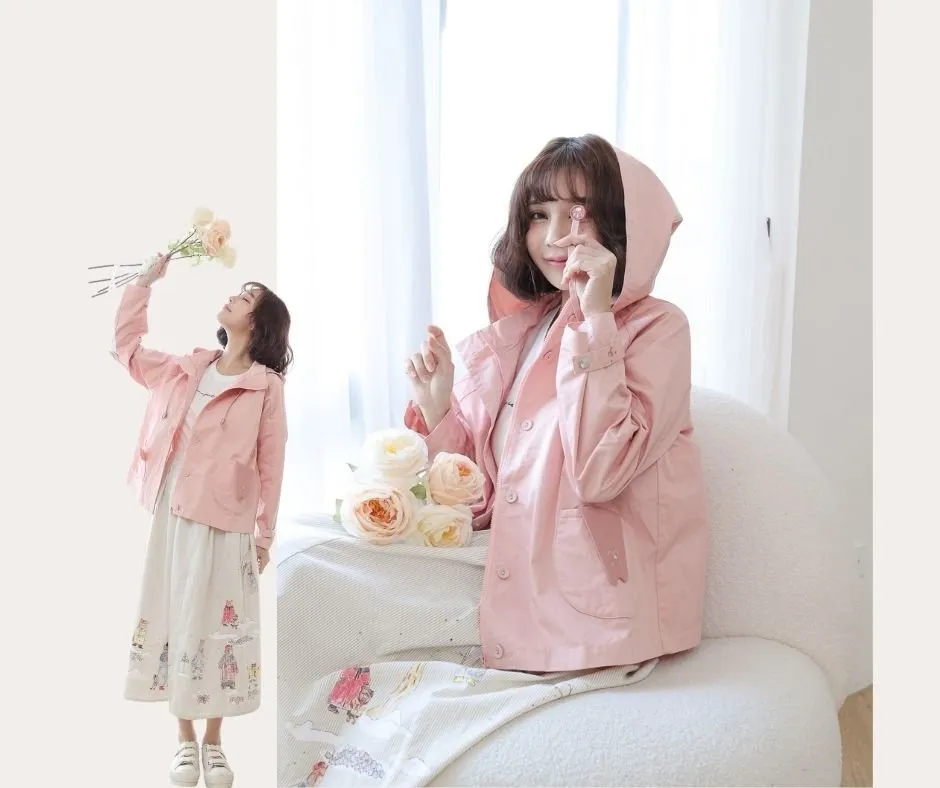使用慵懶的版型 有傘狀的澎澎感 讓風衣外套也可以很輕盈!