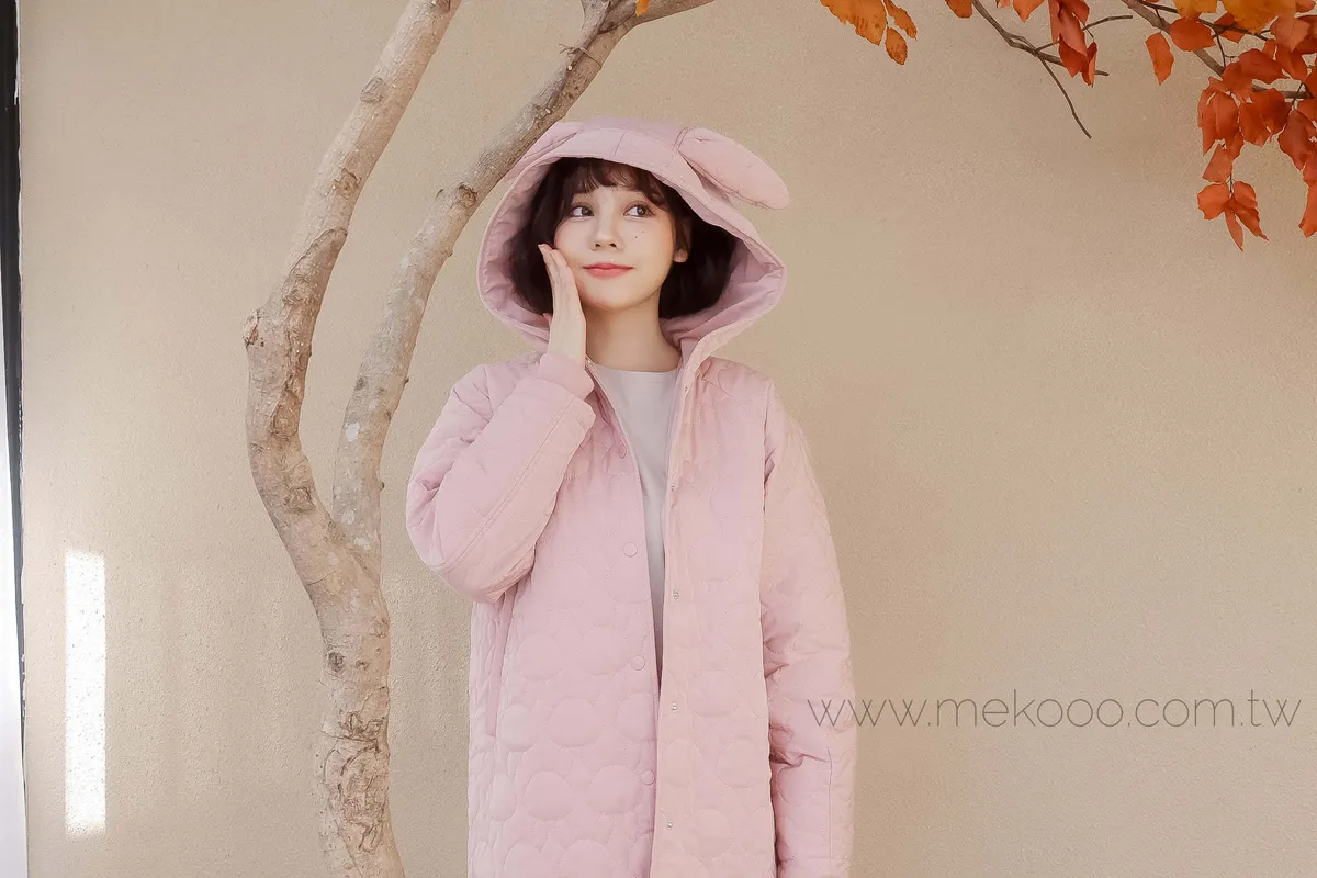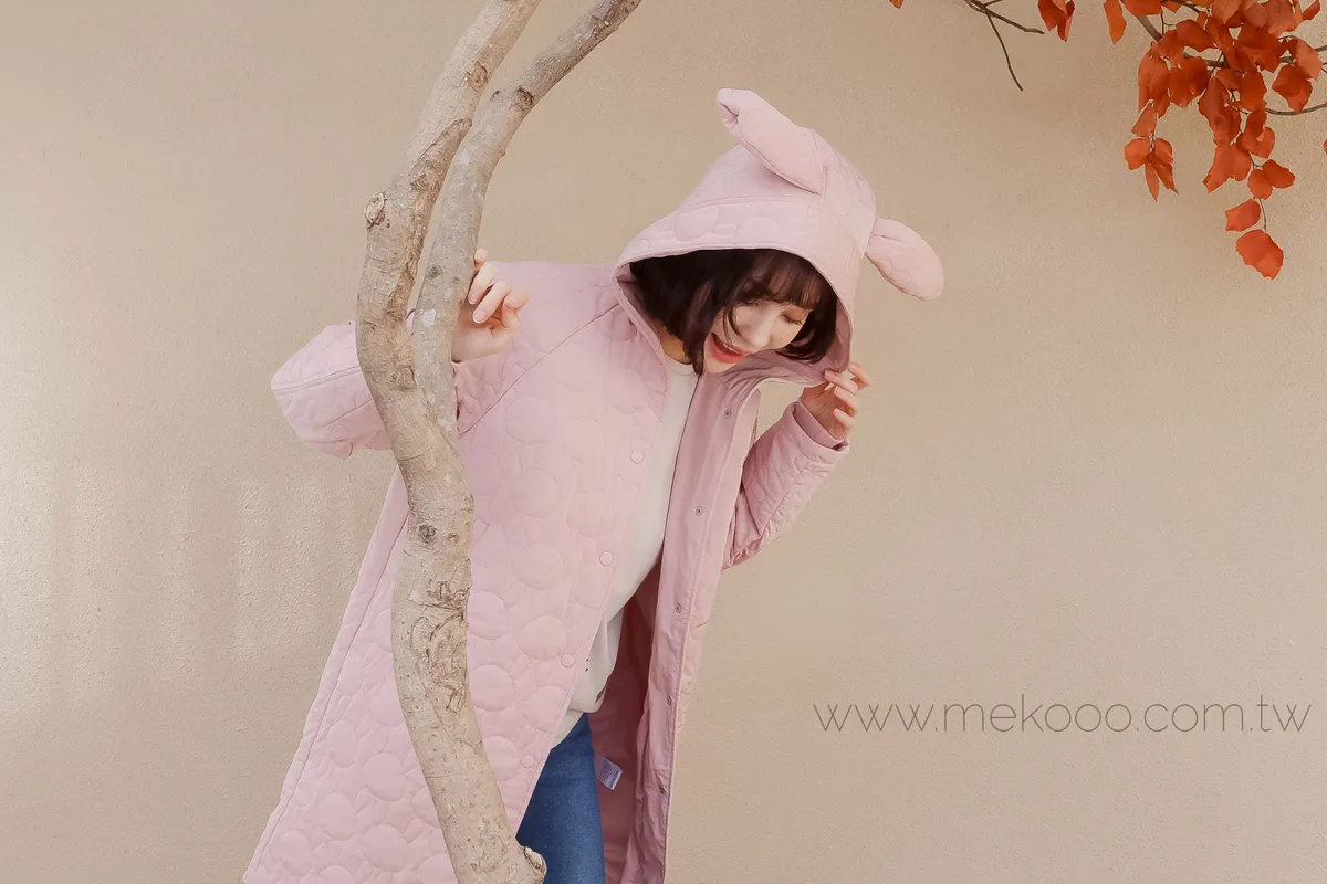 春季新品-mekooo米果家高級感滿版粉兔長外套