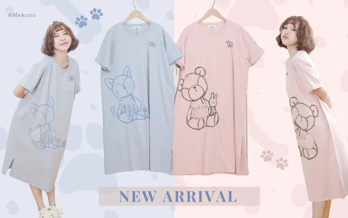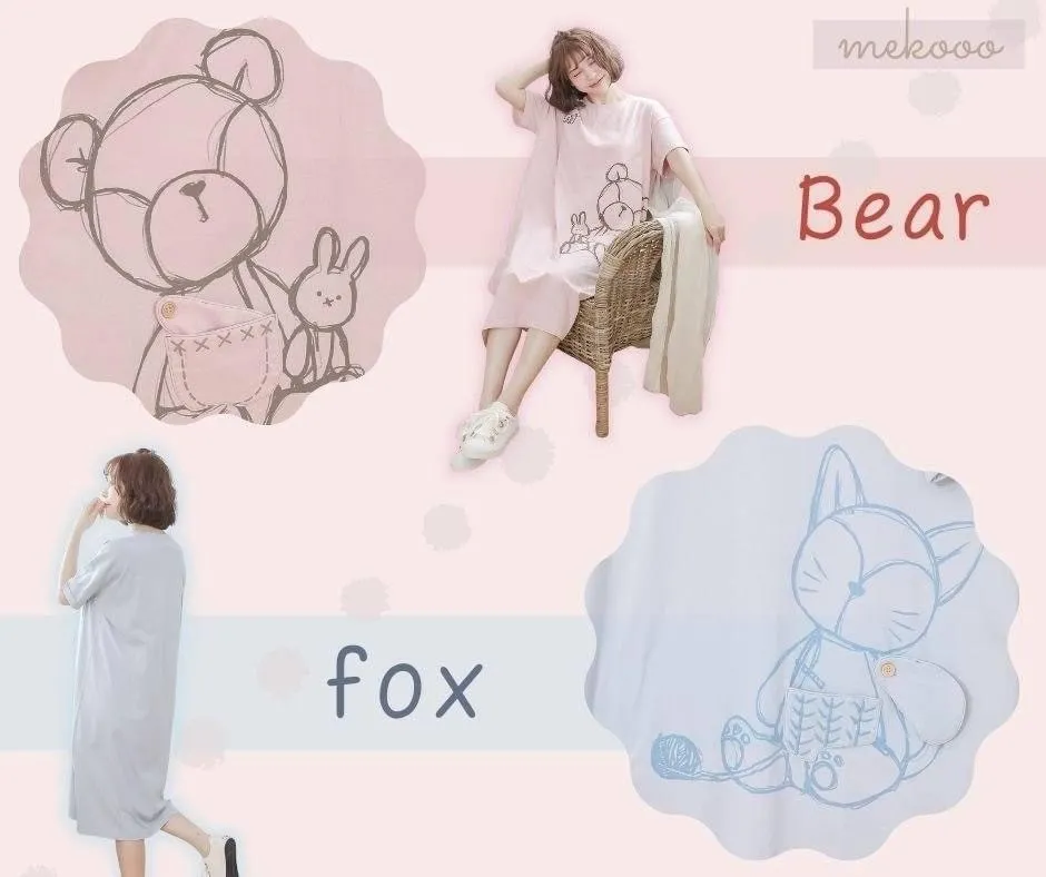 ❤️mekooo品牌第三季-ʕ•ᴥ•ʔ手繪熊熊居家風睡衣 洋裝❤️
