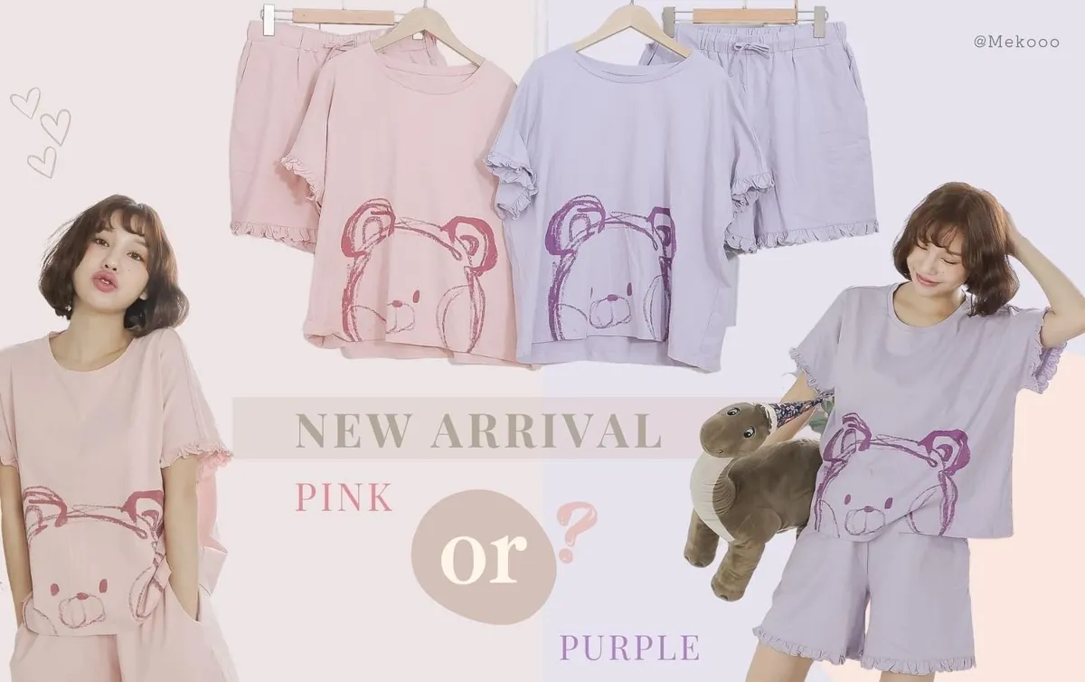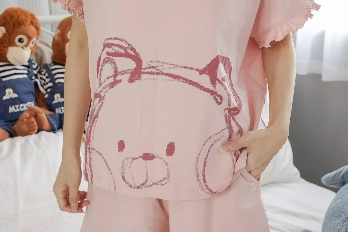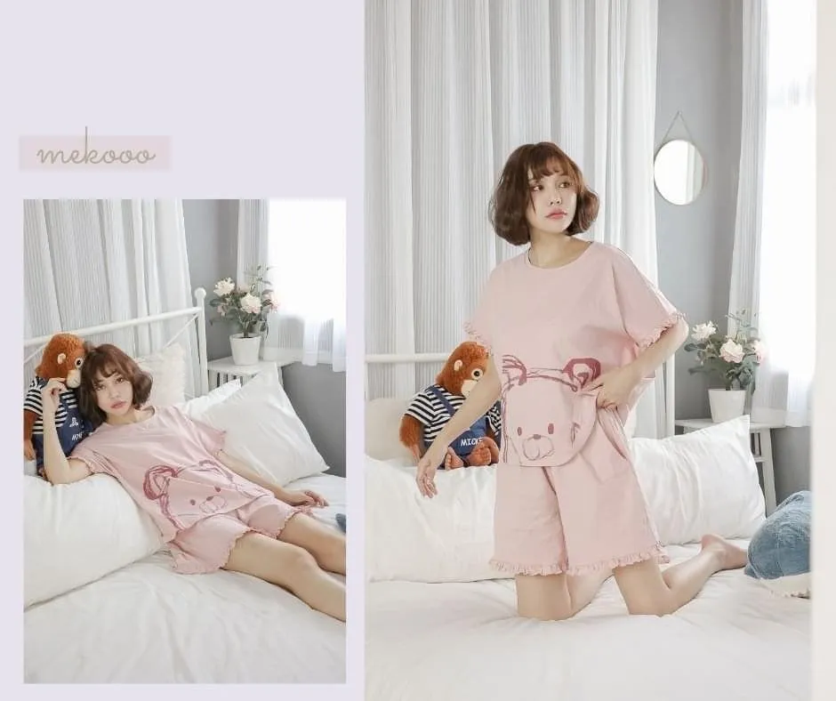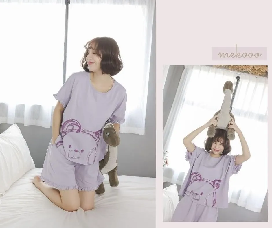 ❤️mekooo品牌第三季-ʕ•ᴥ•ʔ手繪熊熊居家風睡衣 套裝❤️