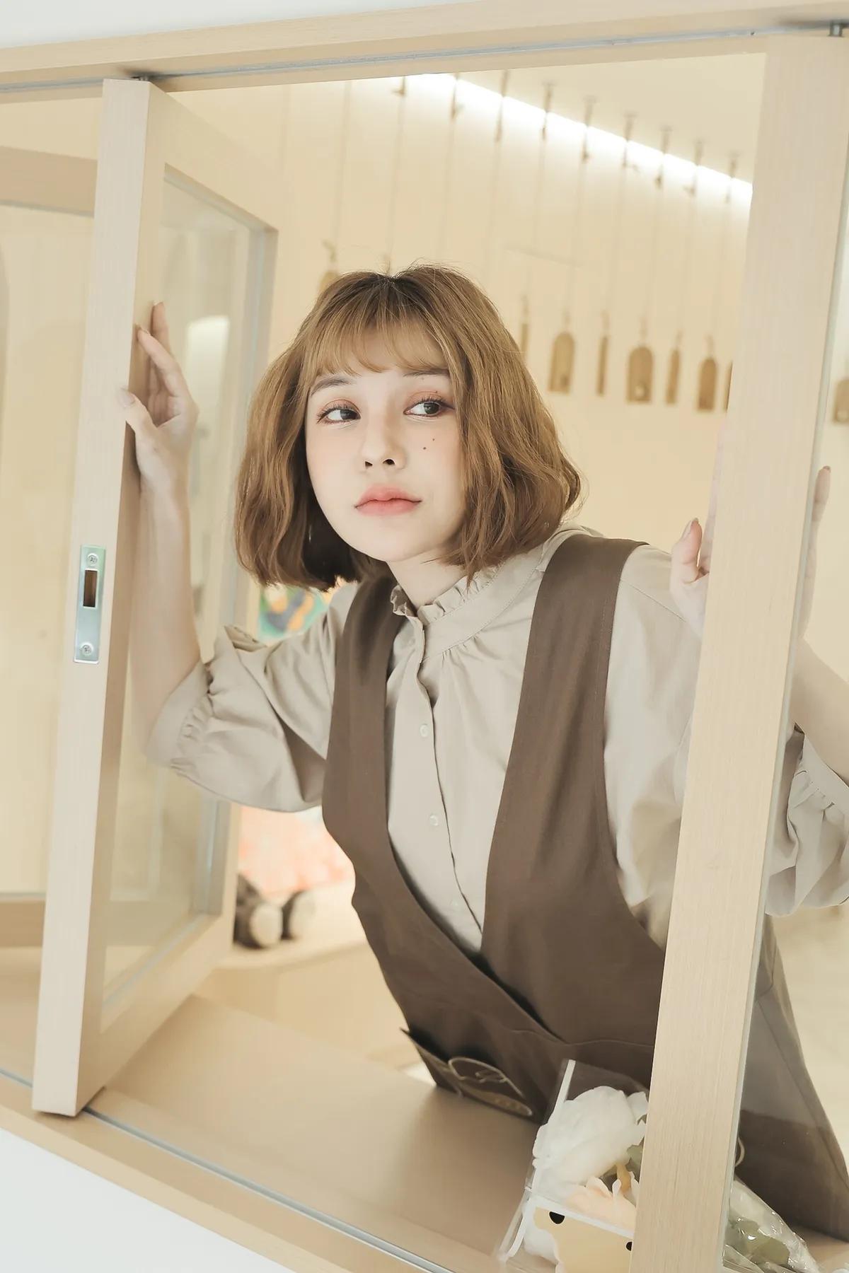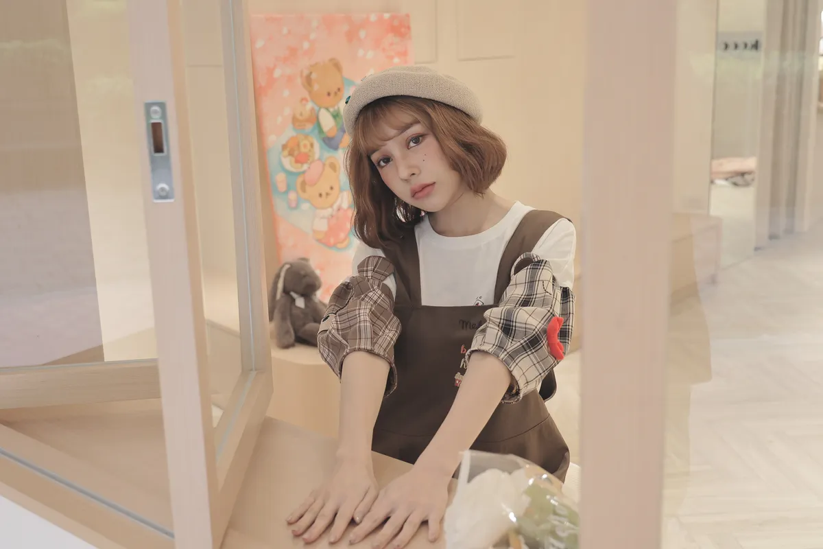 【正反兩穿】貓貓麵包店V領吊帶褲 MK-SS23029
