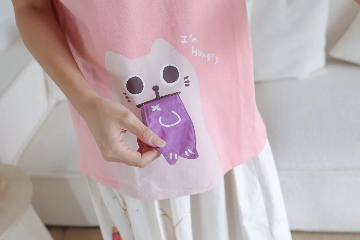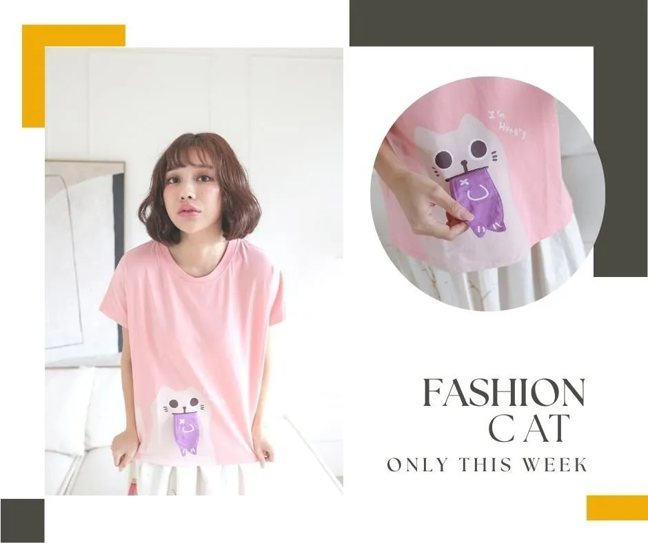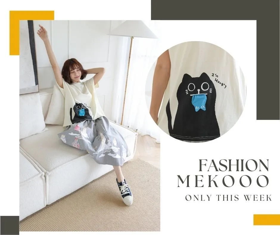 ❤️米果品牌第三季-可愛的貓貓吃魚2WAY趣味上衣❤️ 這件超級無敵無敵卡哇伊!! 衣服上的小心機全是為你們準備的小驚喜 \ ♡ / 貓咪吃的魚其實是小口袋!!! ξ( ✿>◡❛) 可以收納妳的小東西 也可以把魚掏出來當衣服上最可愛的點綴! 材質: 60%棉 40%聚脂纖維