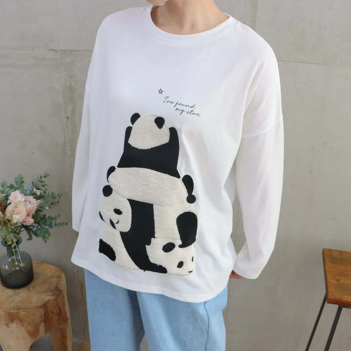 【LIVERY】三隻疊在一起的熊貓樹 長袖上衣 323478