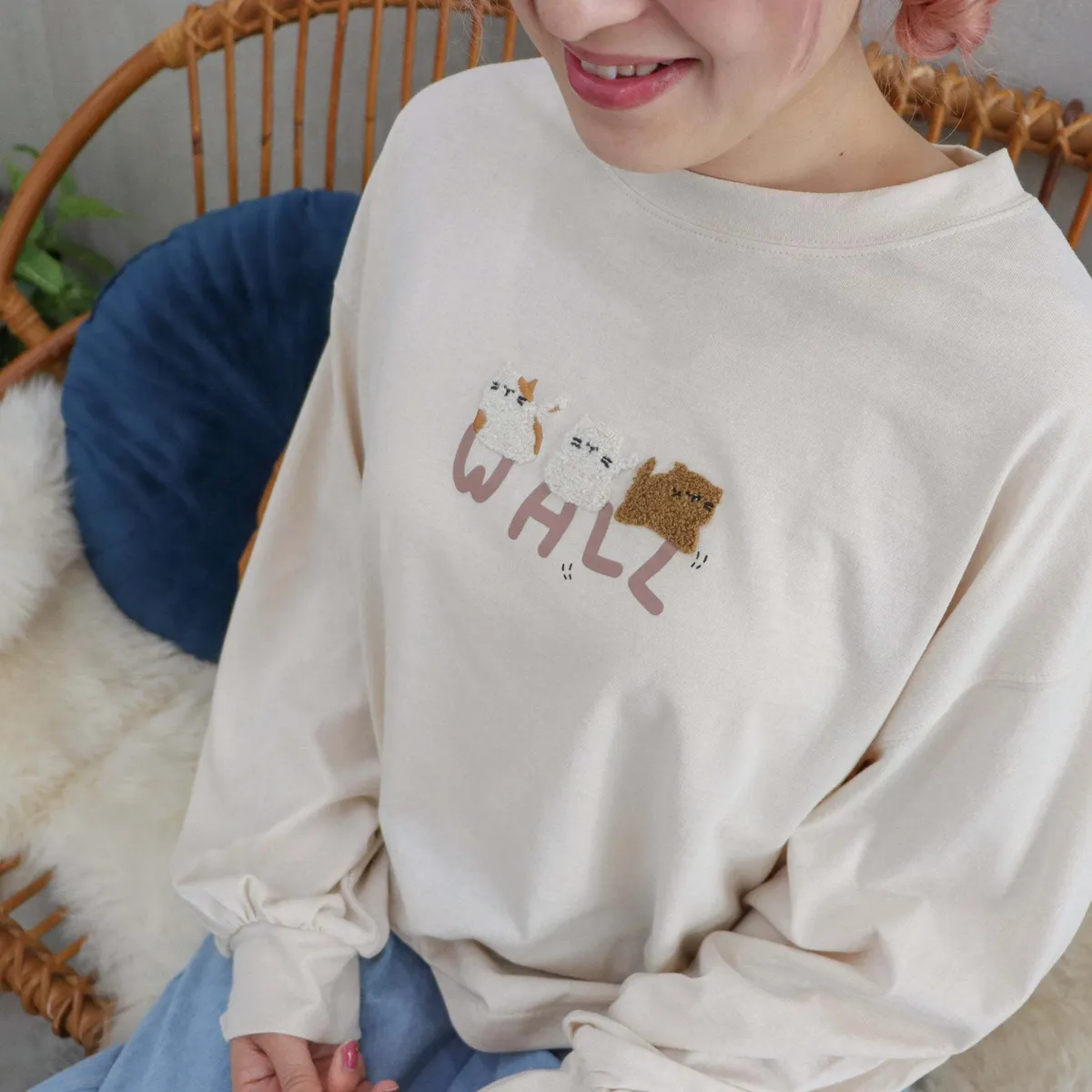 【LIVERY】WHLL三隻Q貓貓長袖上衣 323488