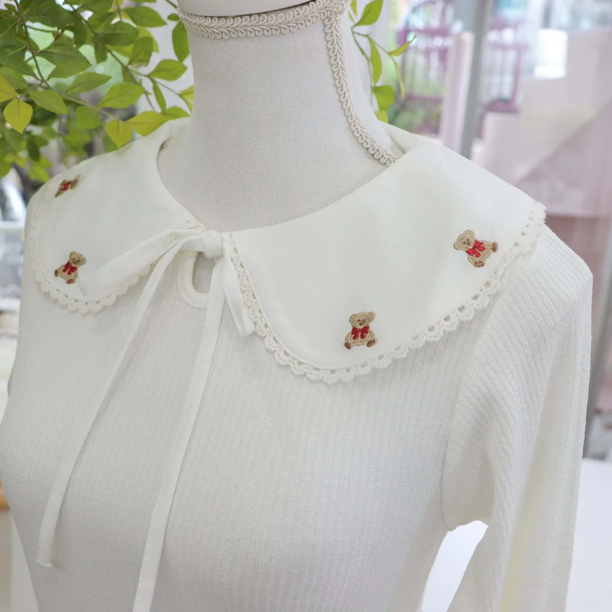 【LIVERY】四隻小熊蝴蝶結綁帶花邊袖上衣 長袖上衣 323876(A)