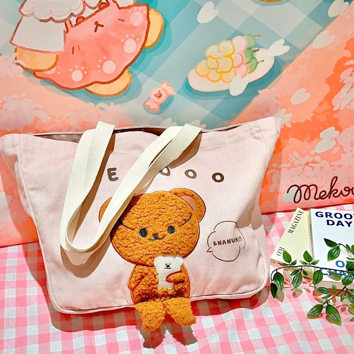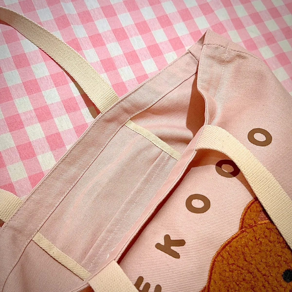 【LIVERYx米果】Q毛米果熊與阿舔粉色帆布包 313940