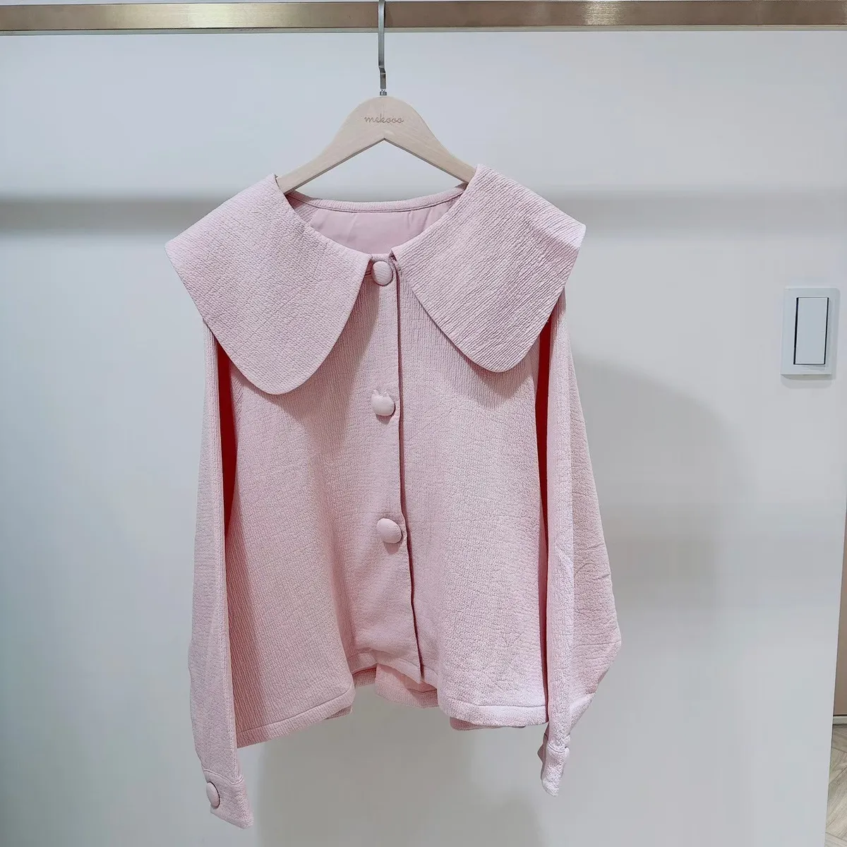 【預購】春系微甜女孩粉色大翻領外套 MK-11100