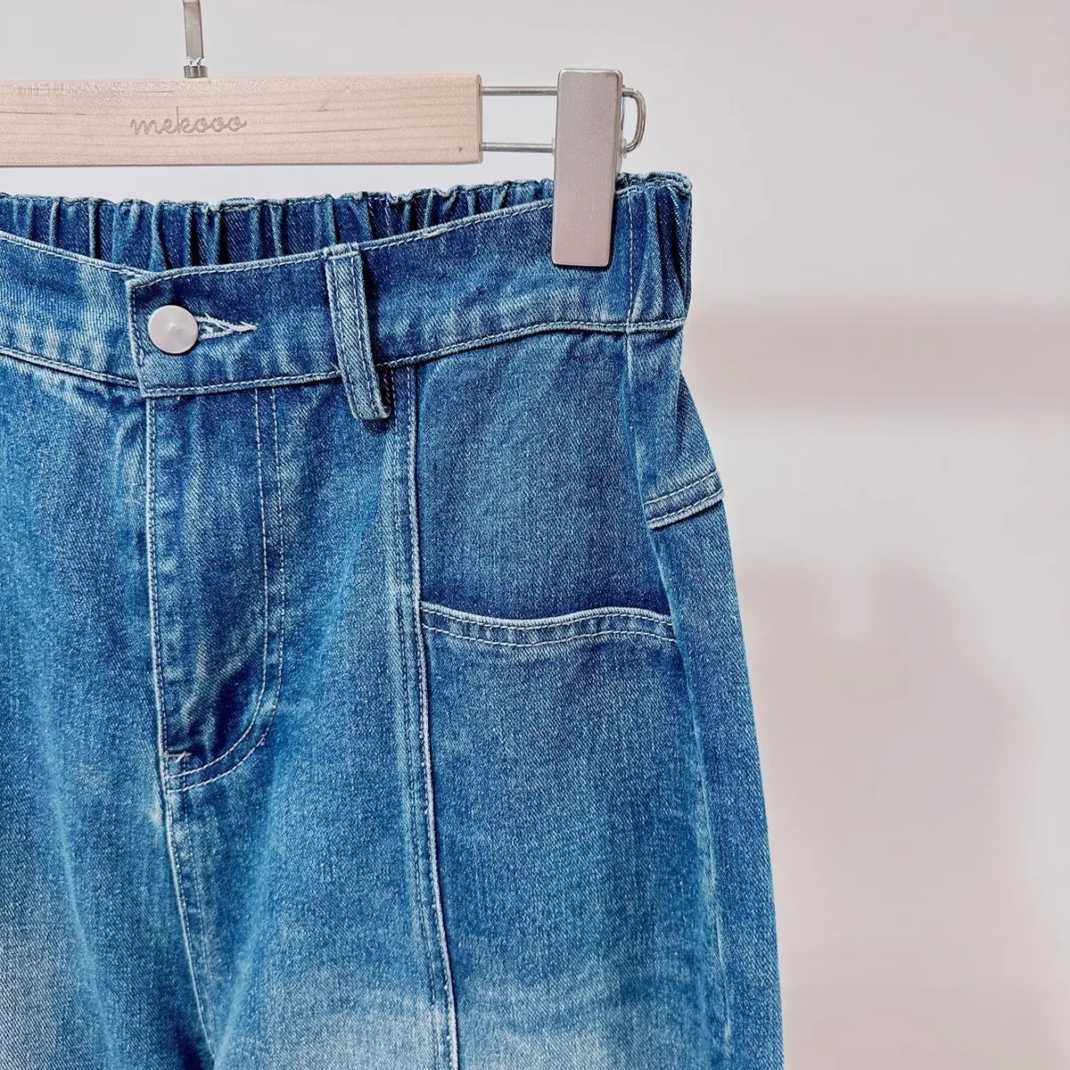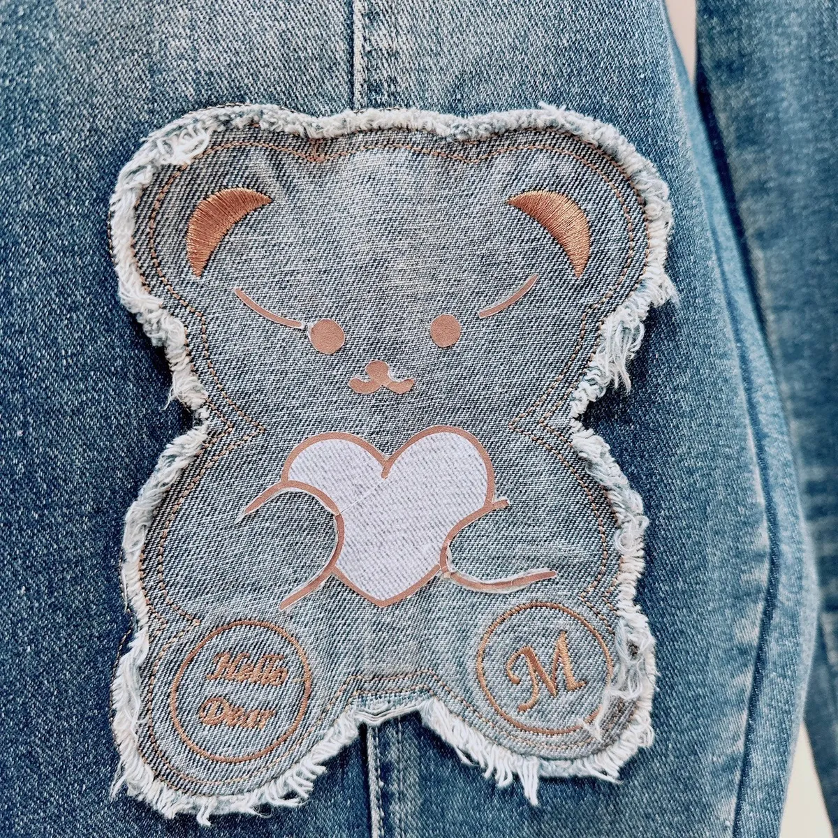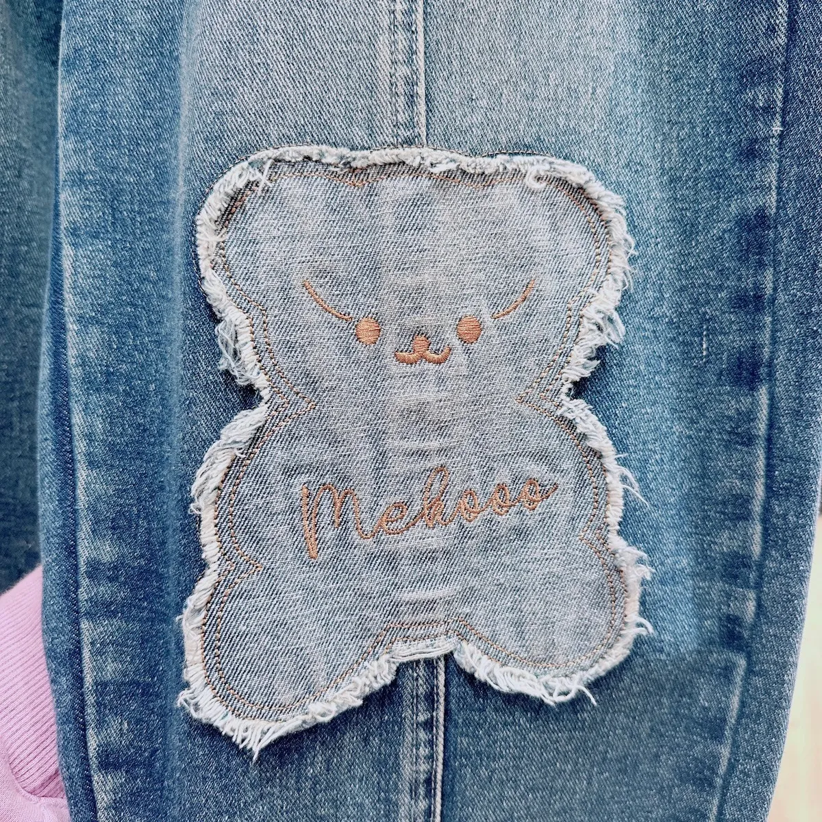 mekooo品牌-米果熊貼花刺繡牛仔長褲