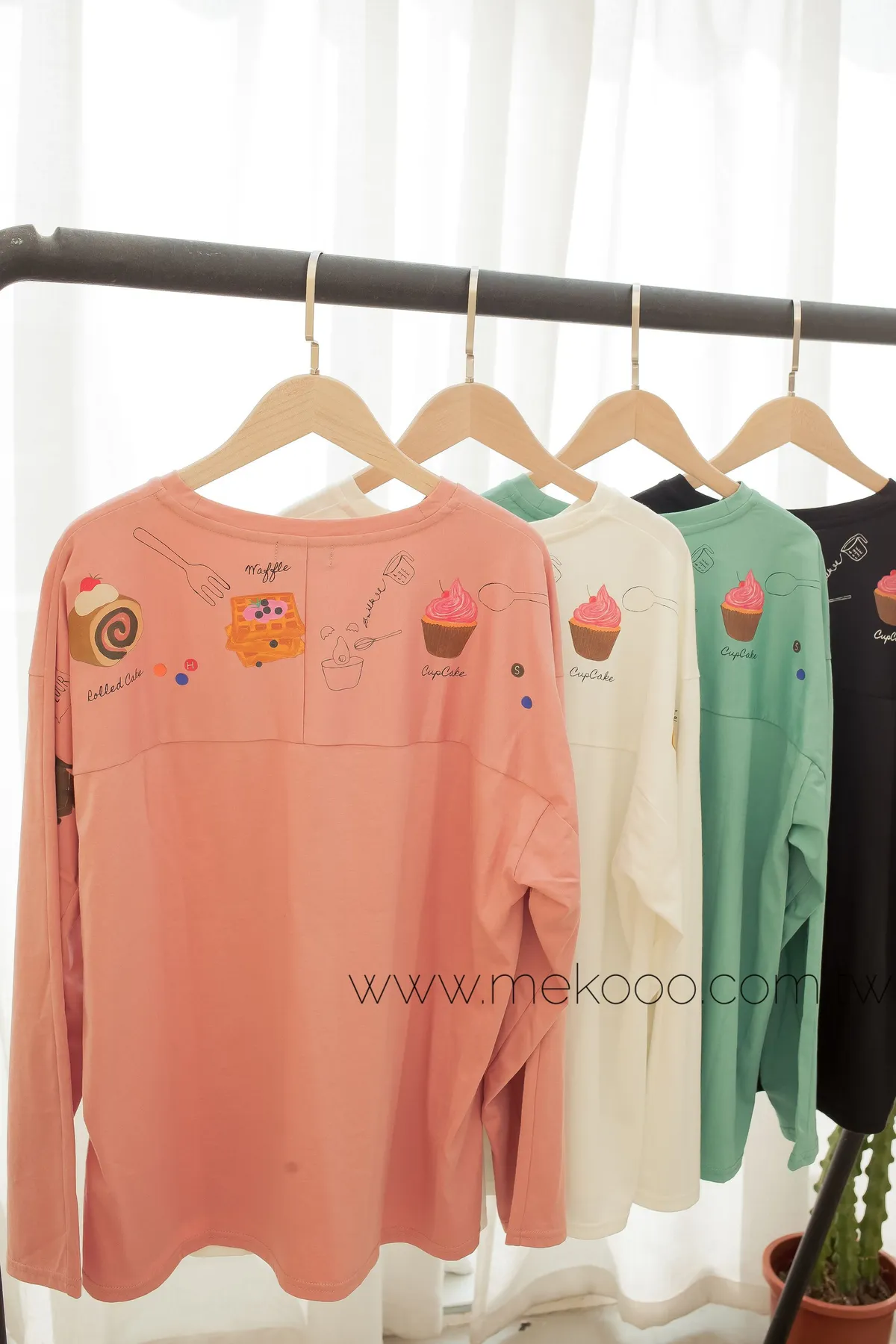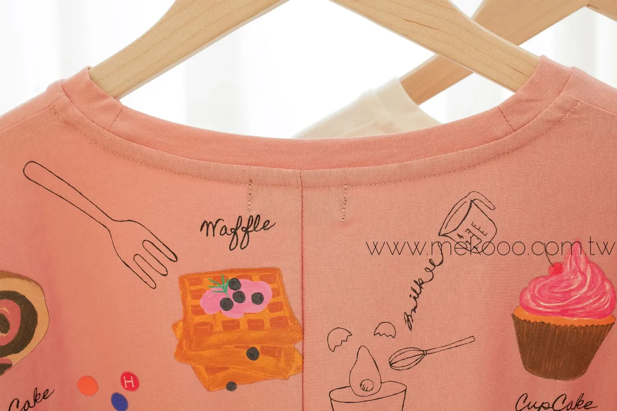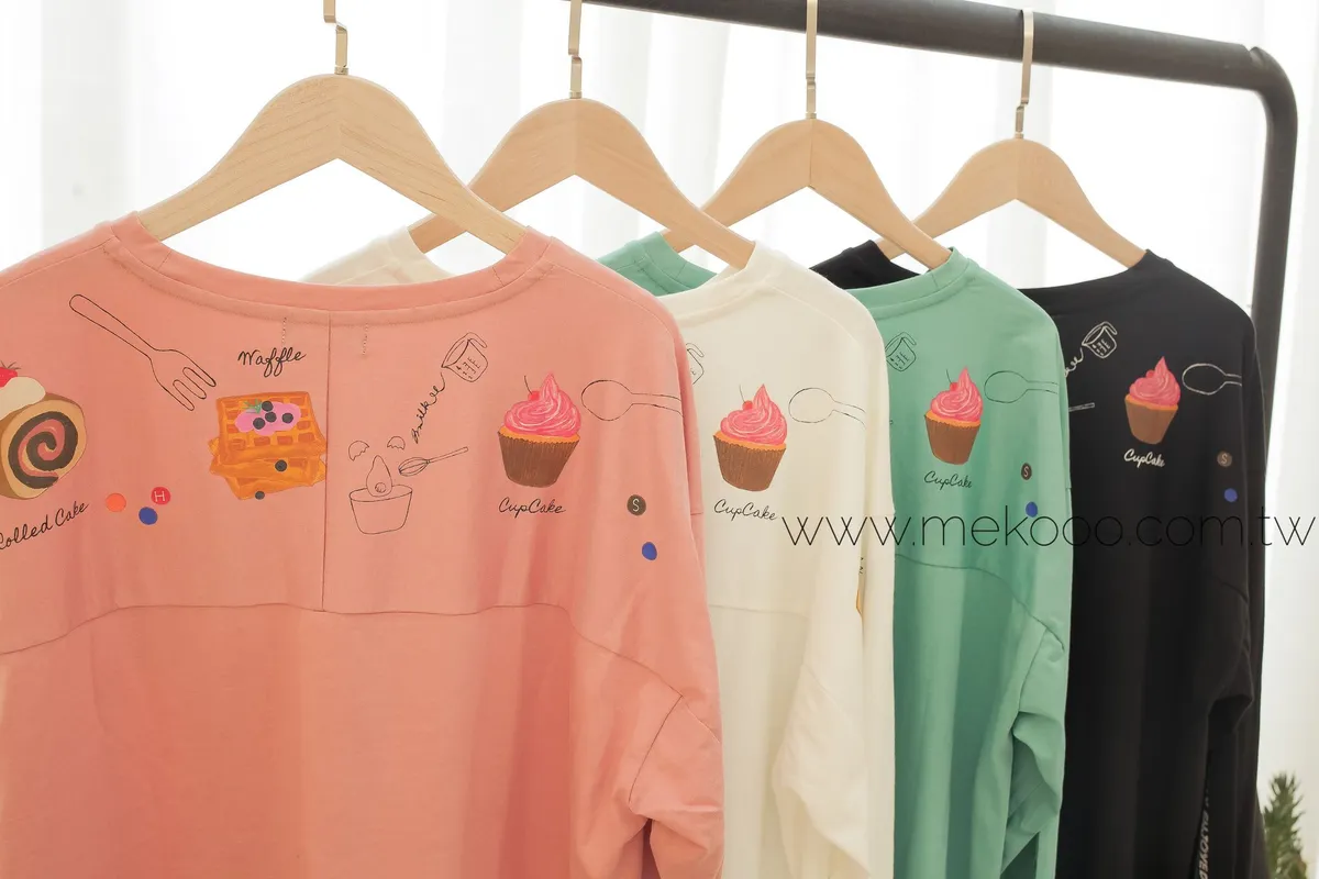 天啊 非常乾淨的素面上衣 背後居然是滿滿甜點印花