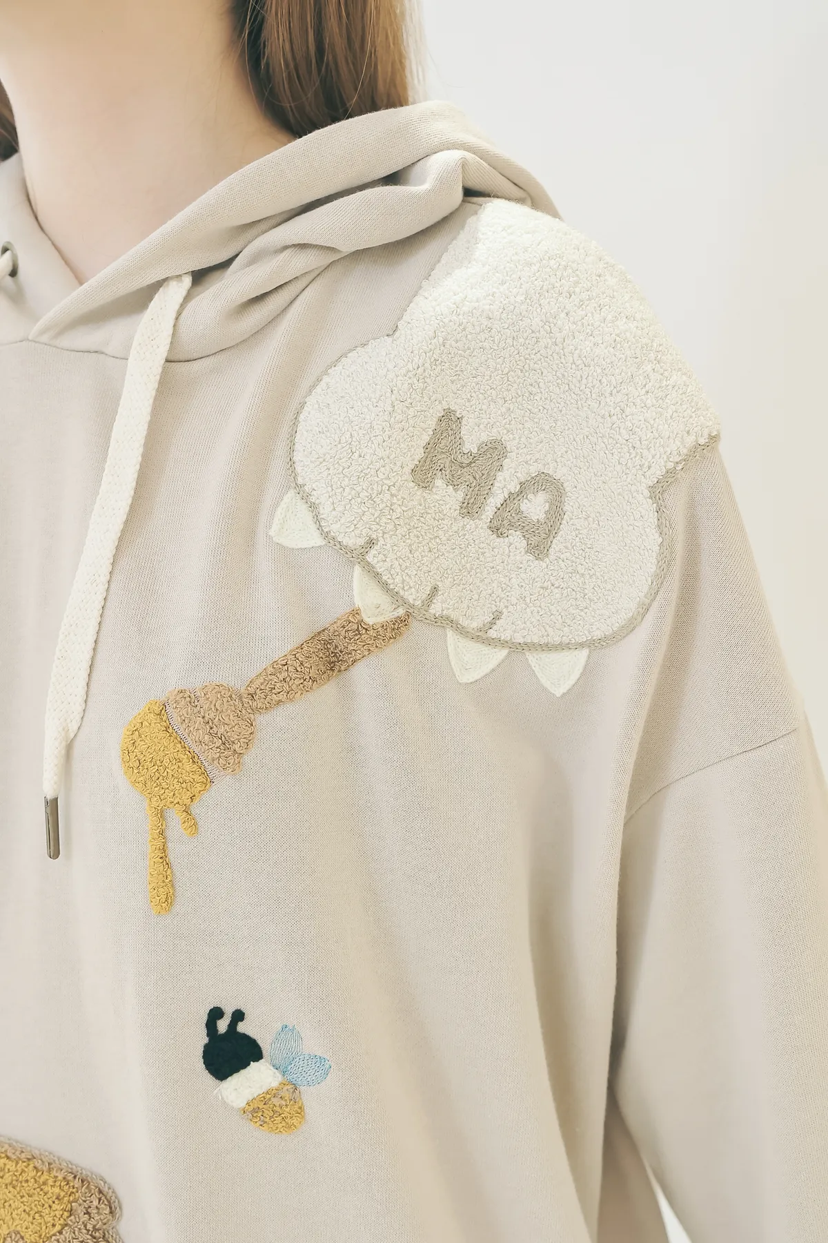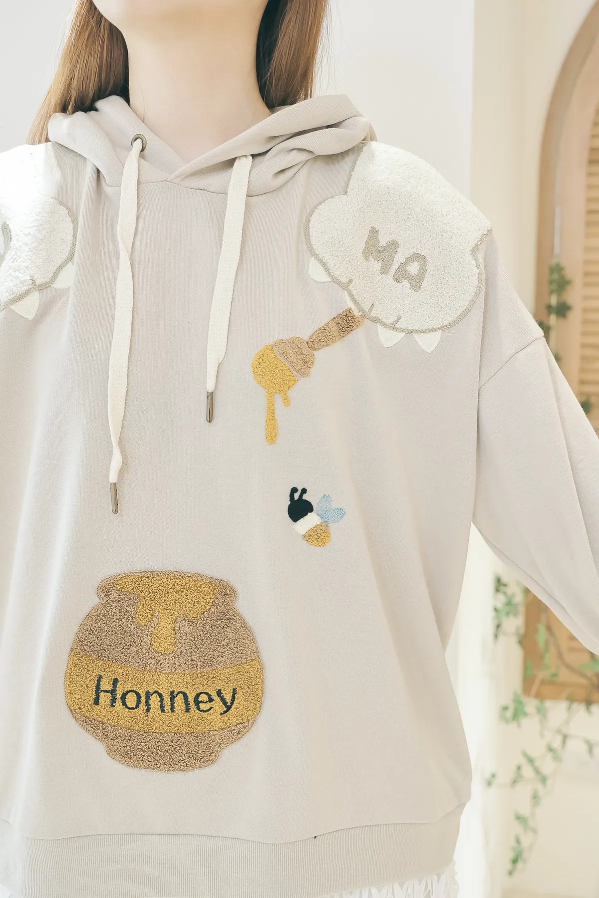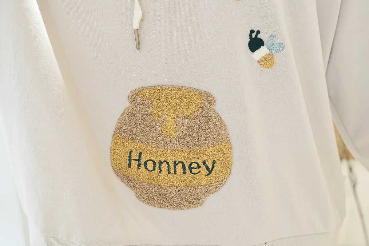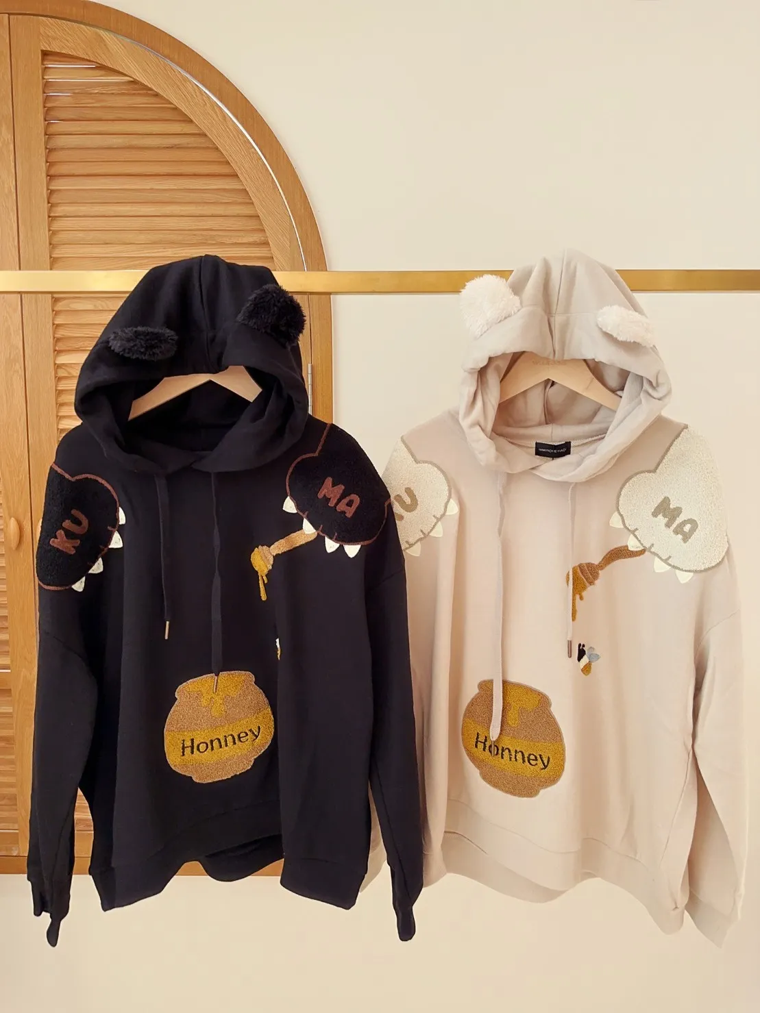 【日本RAS】熊熊吃蜂蜜抽繩連帽長袖上衣 100104