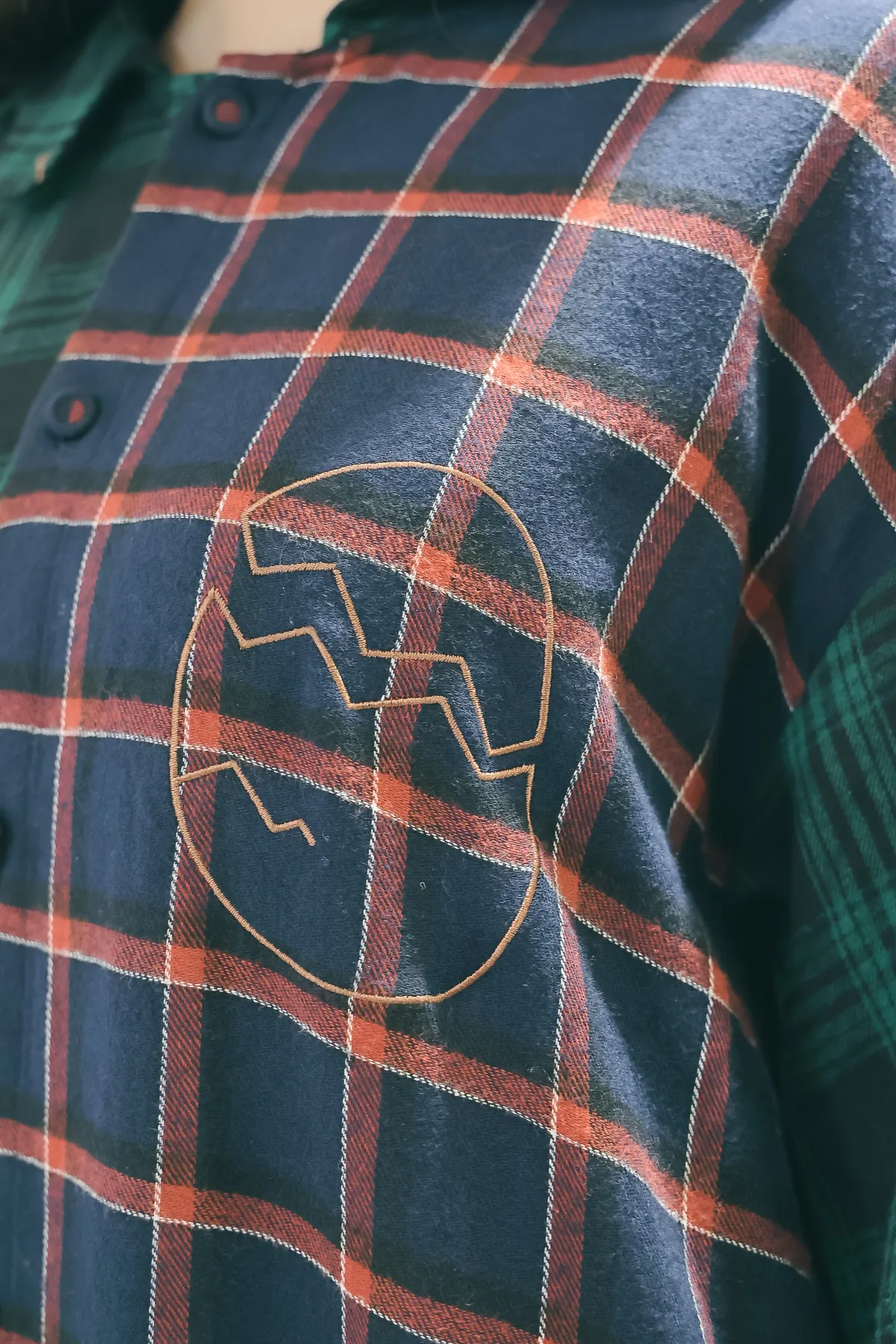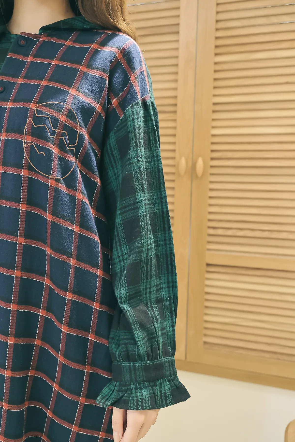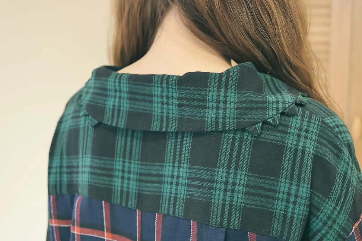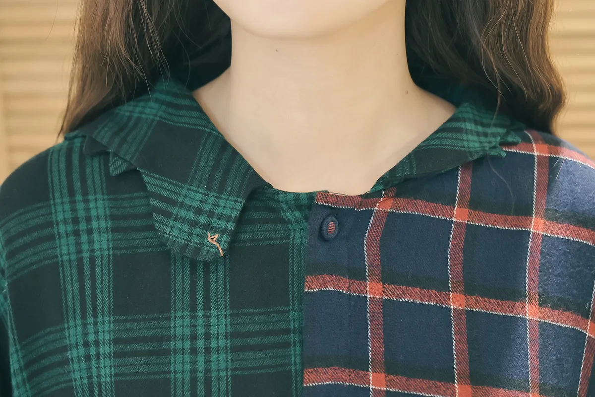 【日本RAS】恐龍拼接格紋長版襯衫 110285