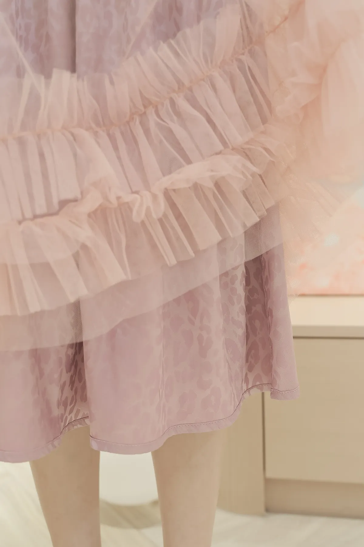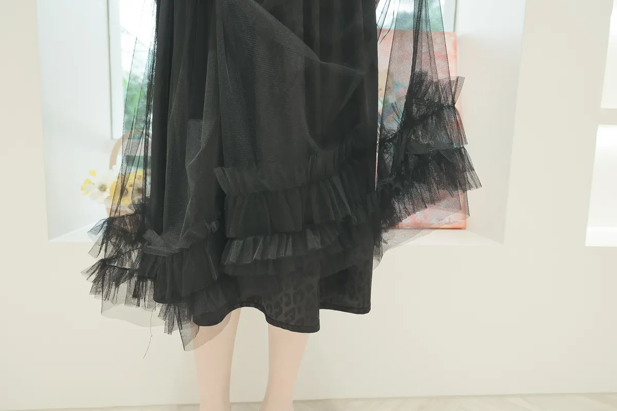【日本RAS】豹紋下擺壓摺2WAY紗裙 110196