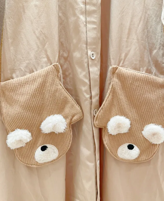 【日本RAS】熊熊手套口袋長版襯衫 110287