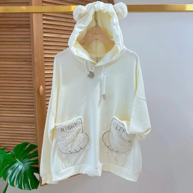 【日本RAS】立體QQ毛熊掌口袋長袖帽T 100066