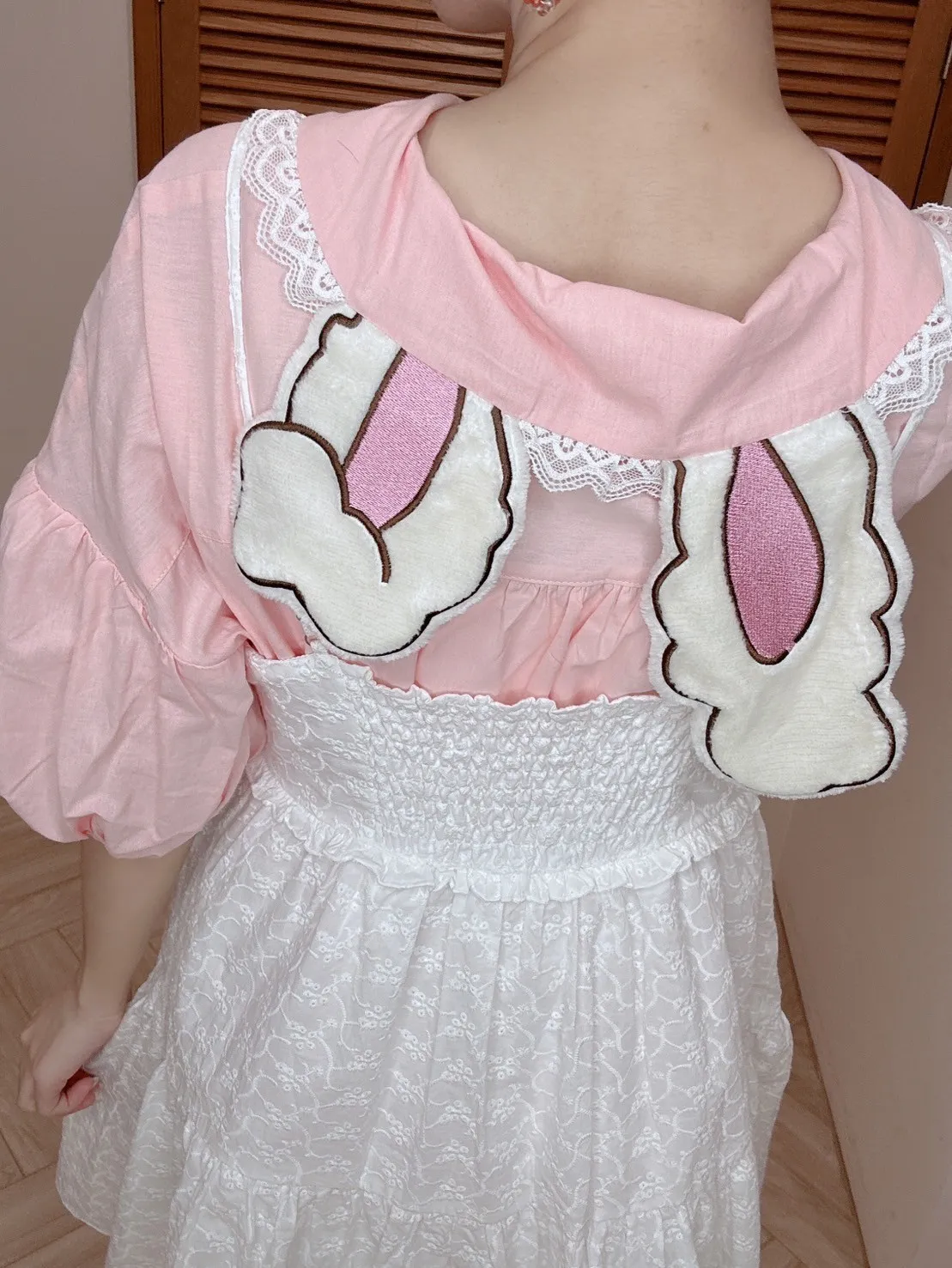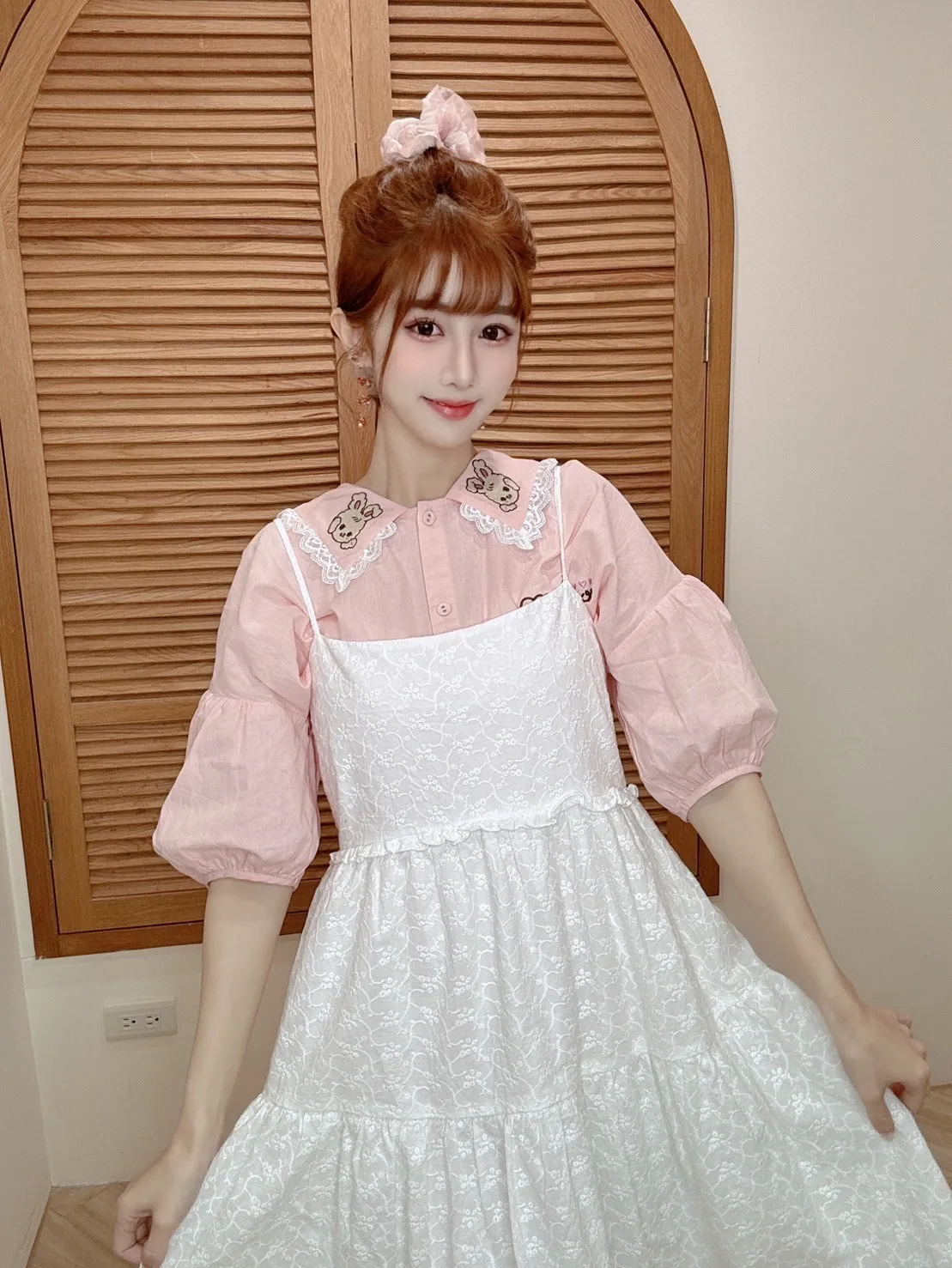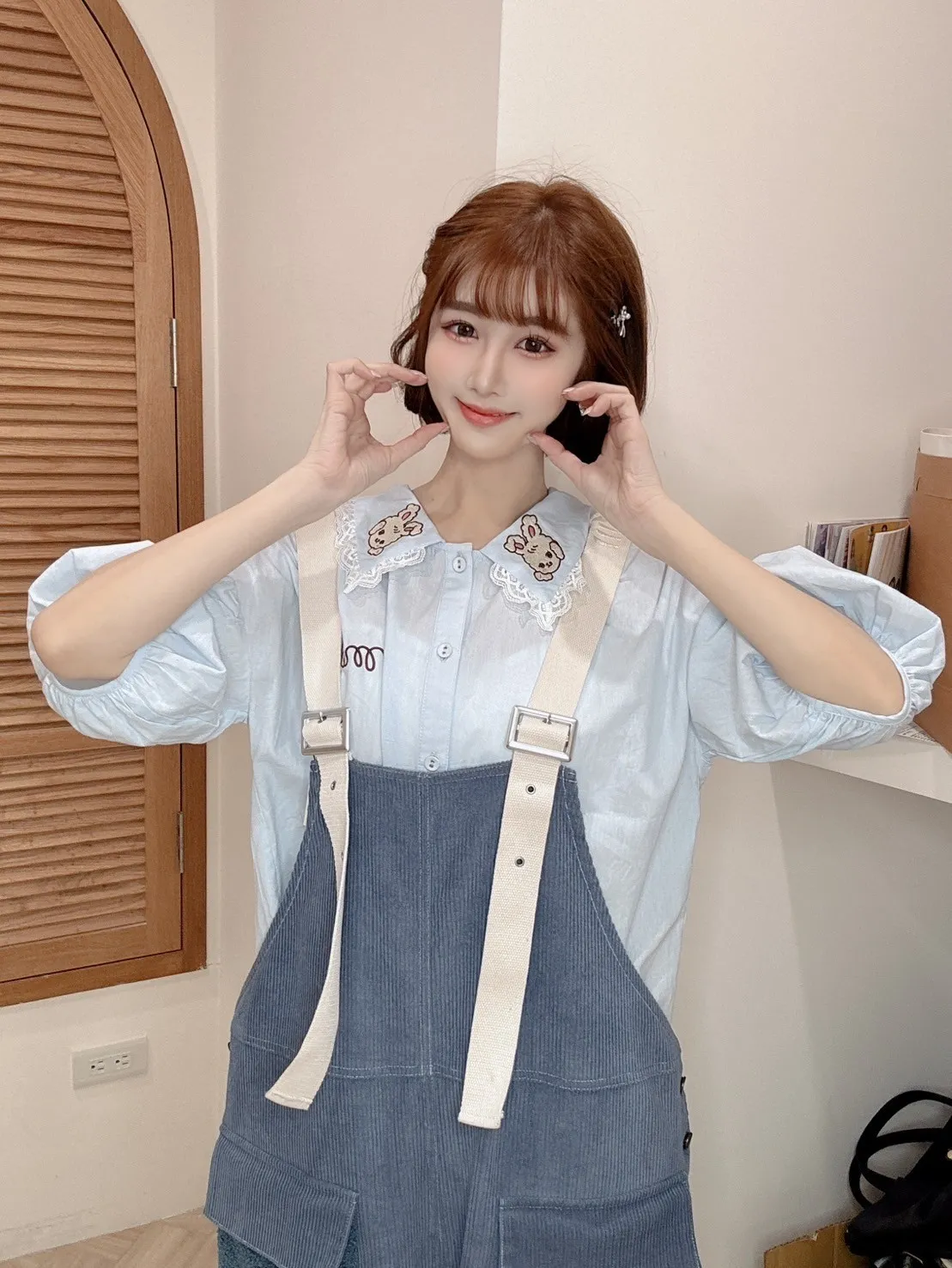 【Mekooo】雲朵兔耳朵設計襯衫241225襯衫