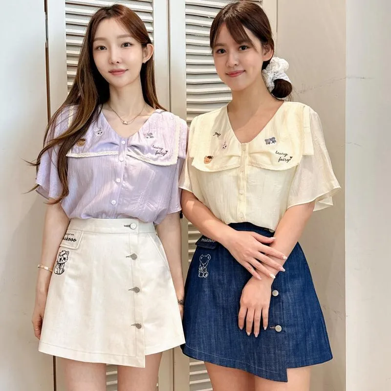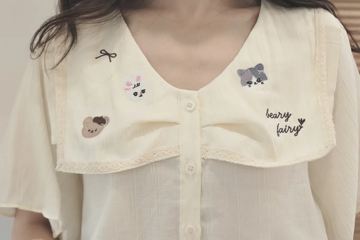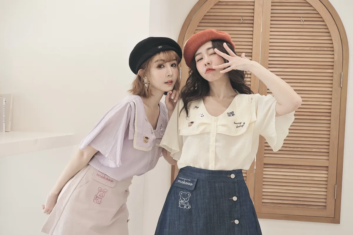 【FAVE X Mekooo】蝴蝶結領片立體小角色上衣