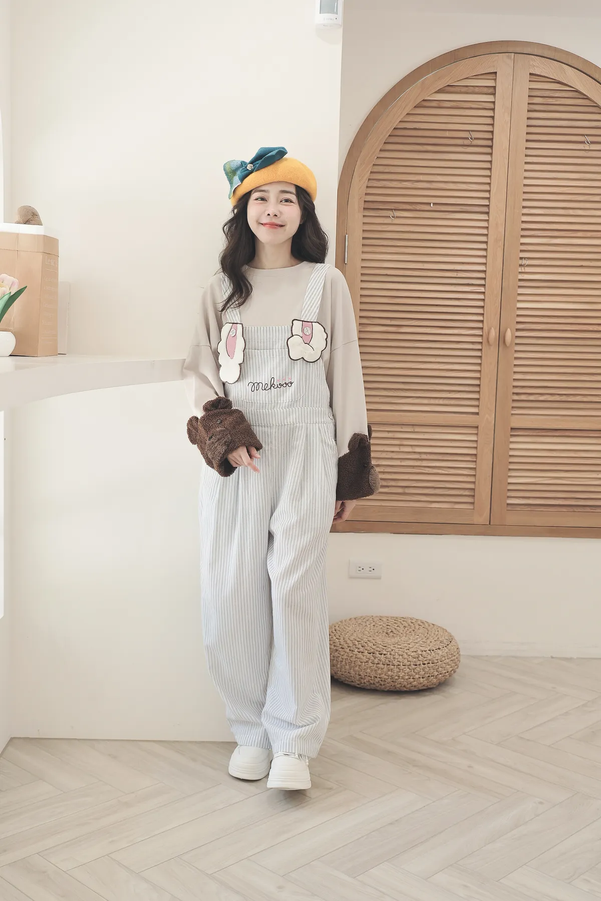 【日本KU手作家】雙色米果熊貝蕾帽