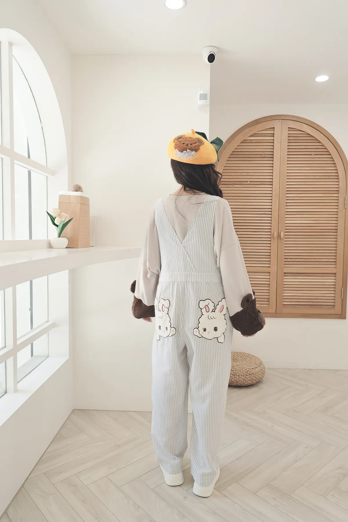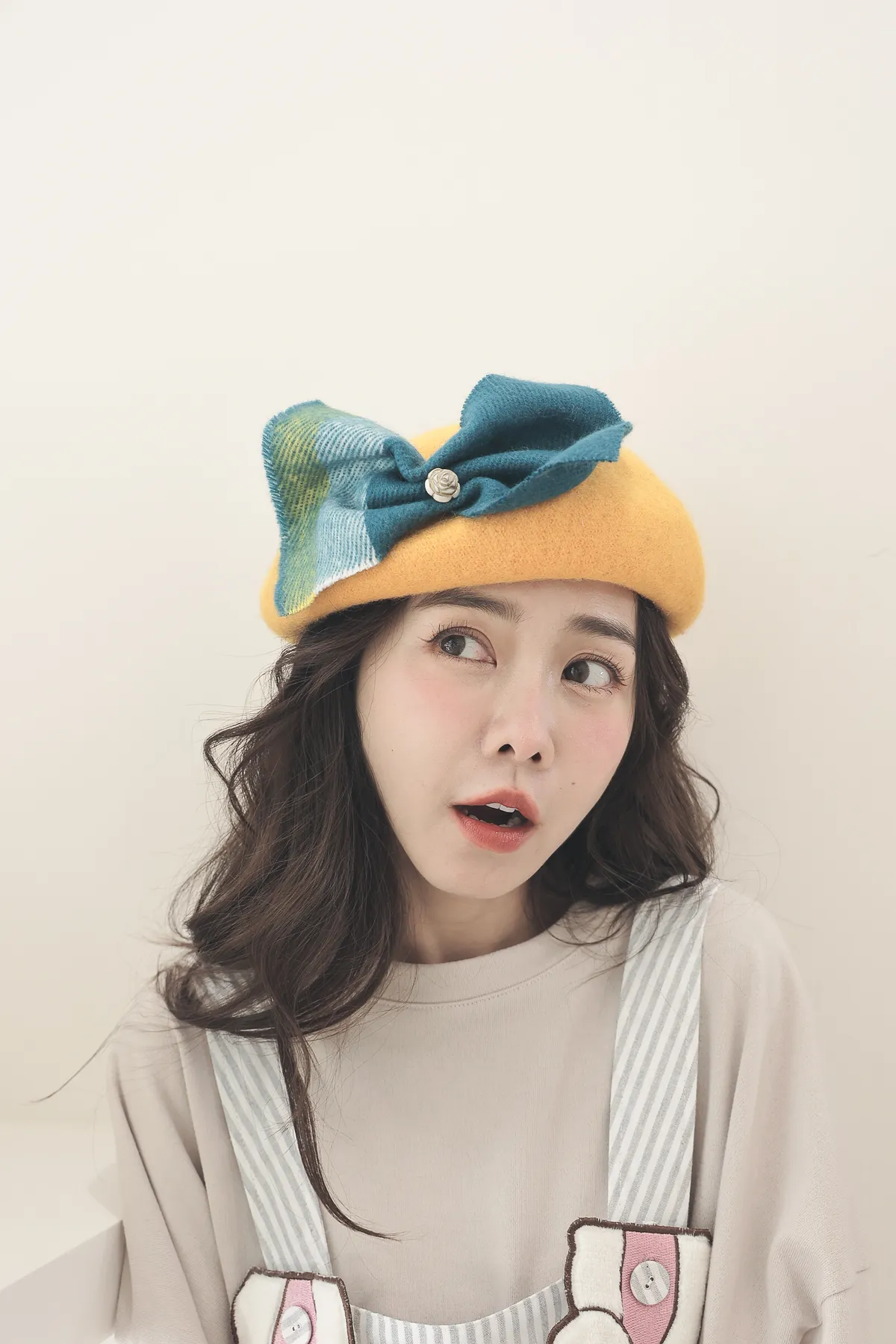 【日本KU手作家】雲朵兔格紋大蝴蝶結貝蕾帽