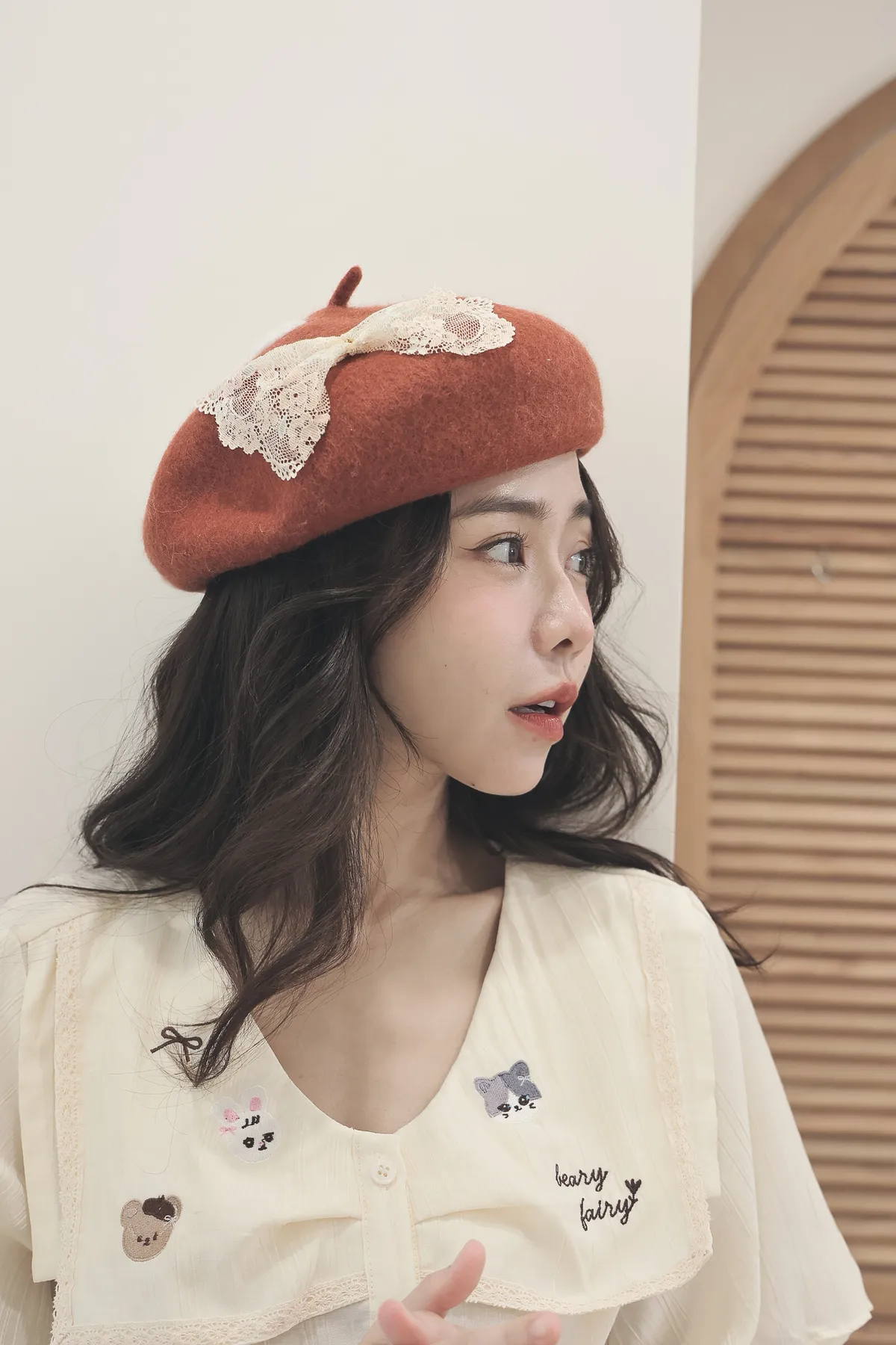 【日本KU手作家】棕色米果熊格紋大蝴蝶結貝蕾帽