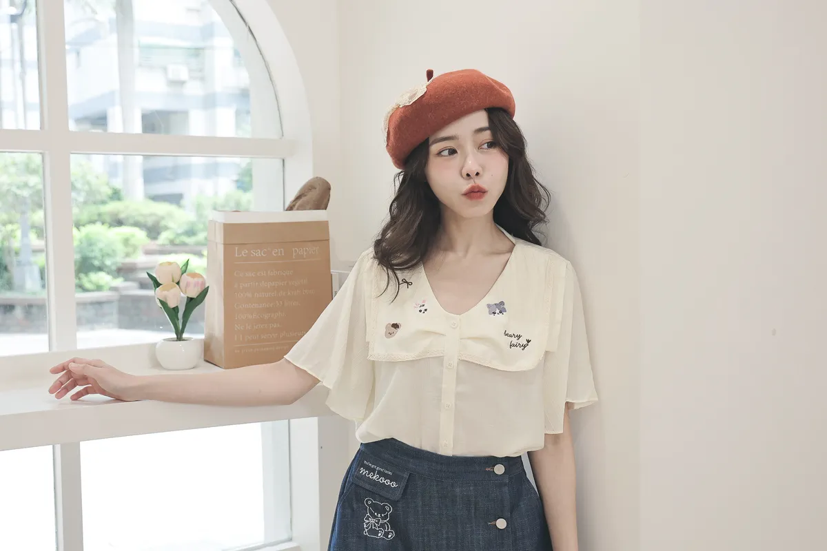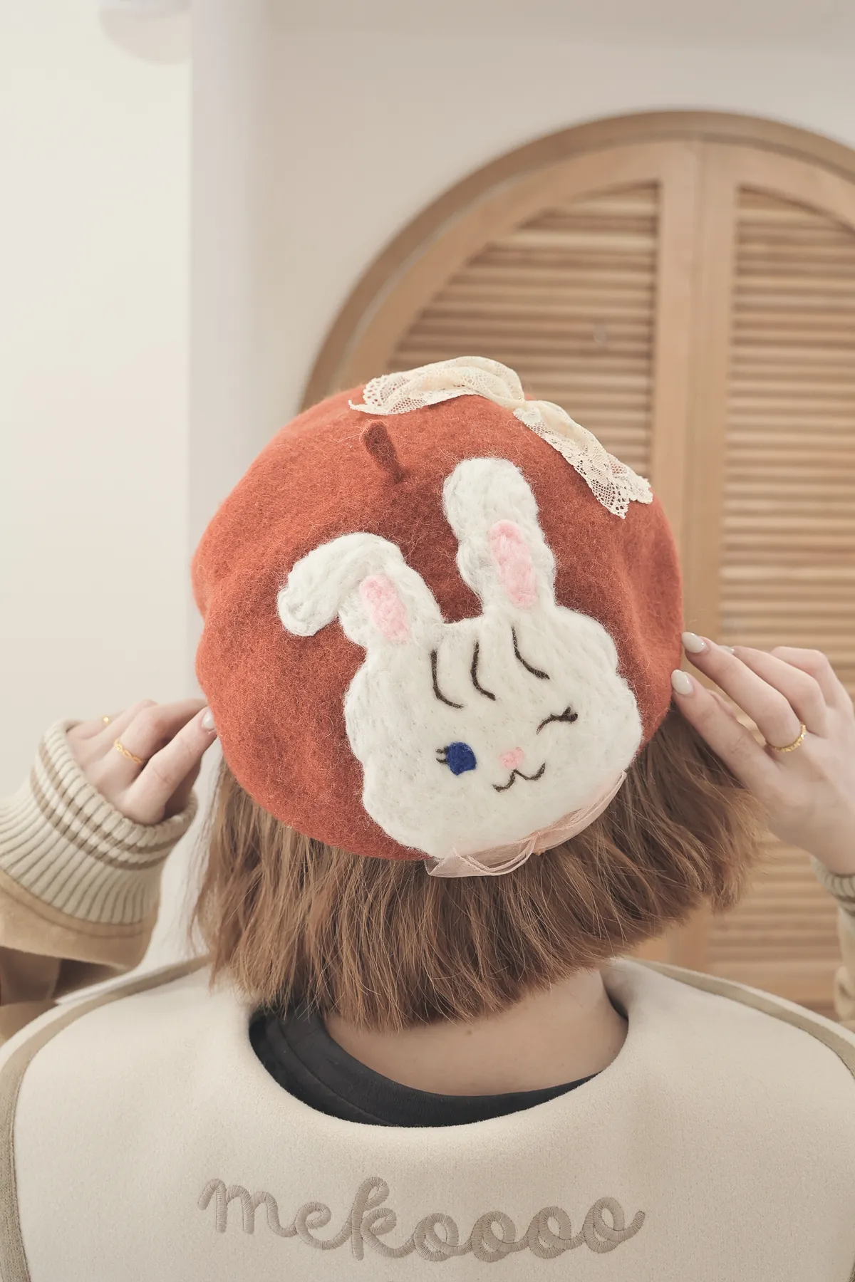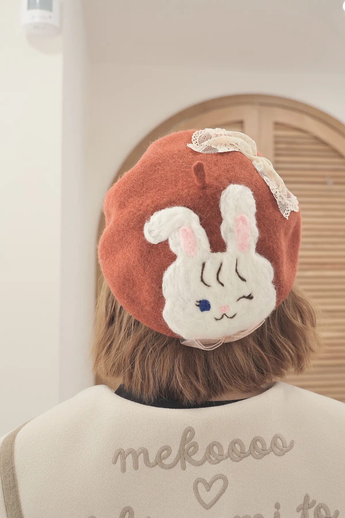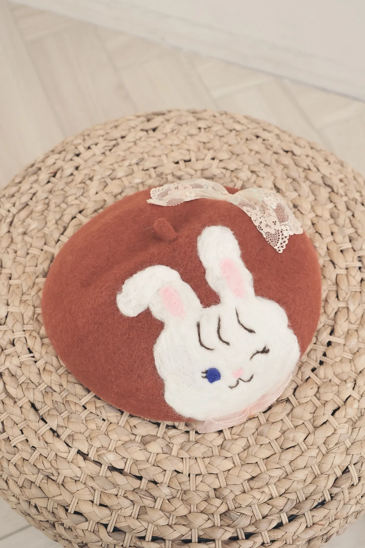 【日本KU手作家】雲朵兔格紋大蝴蝶結貝蕾帽