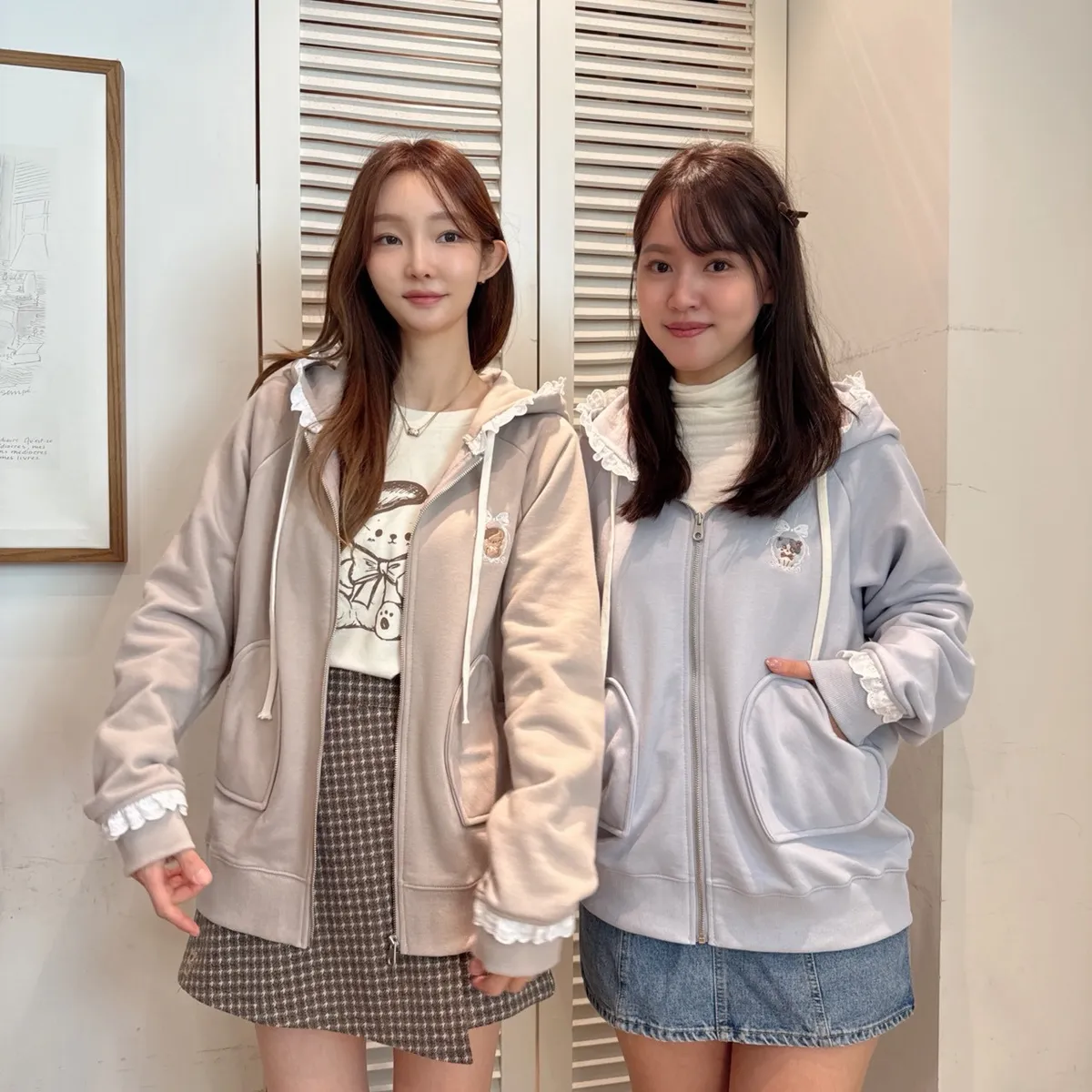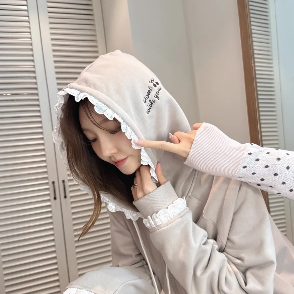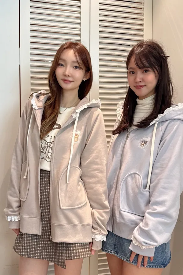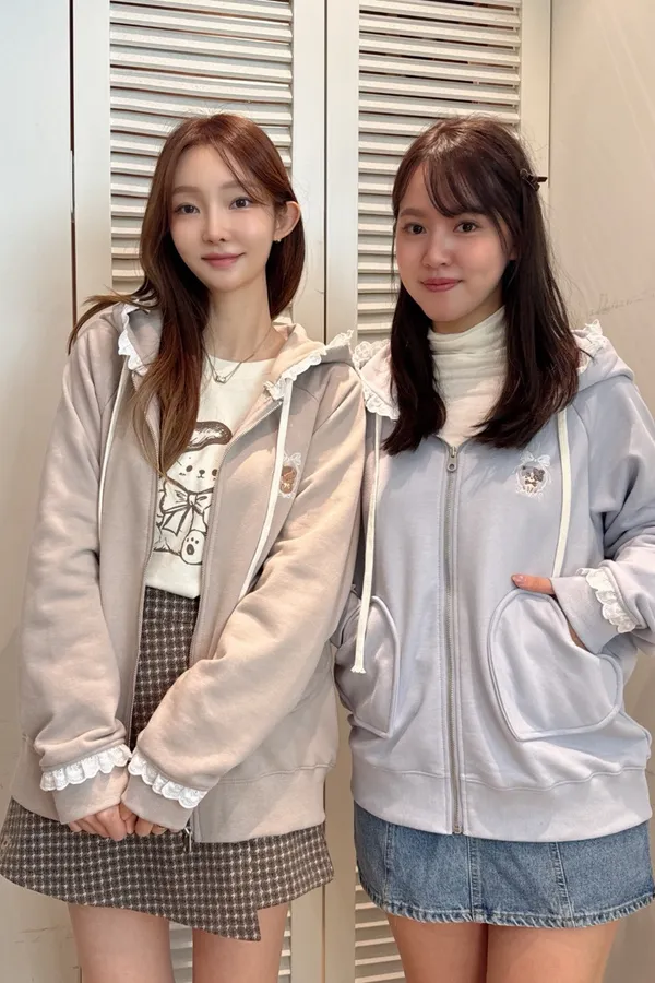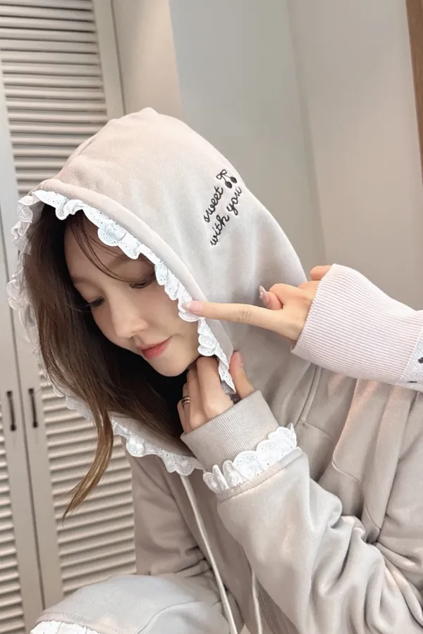 【Mekooo X FAVE】櫻桃蕾絲花邊米果熊刺繡落肩外套