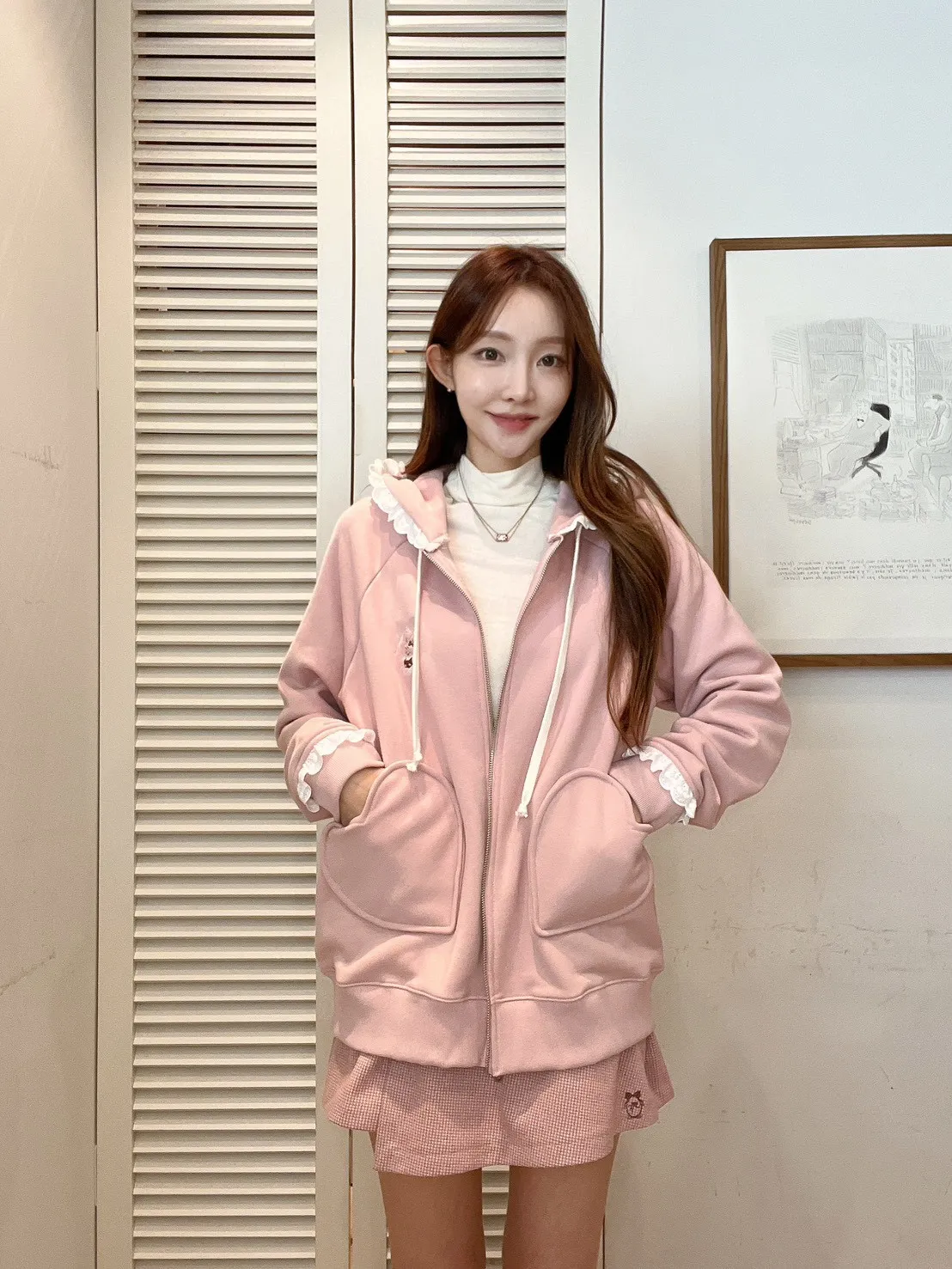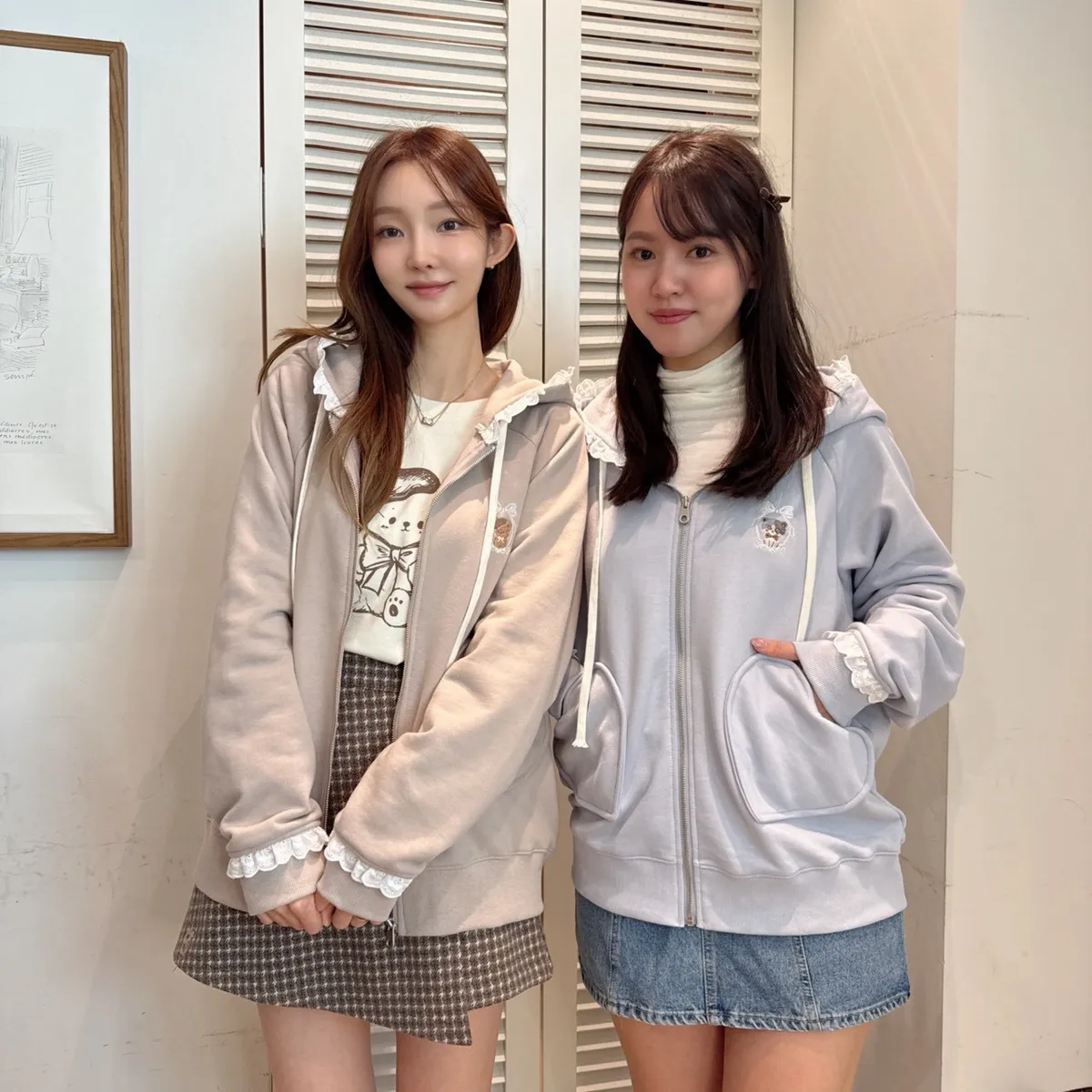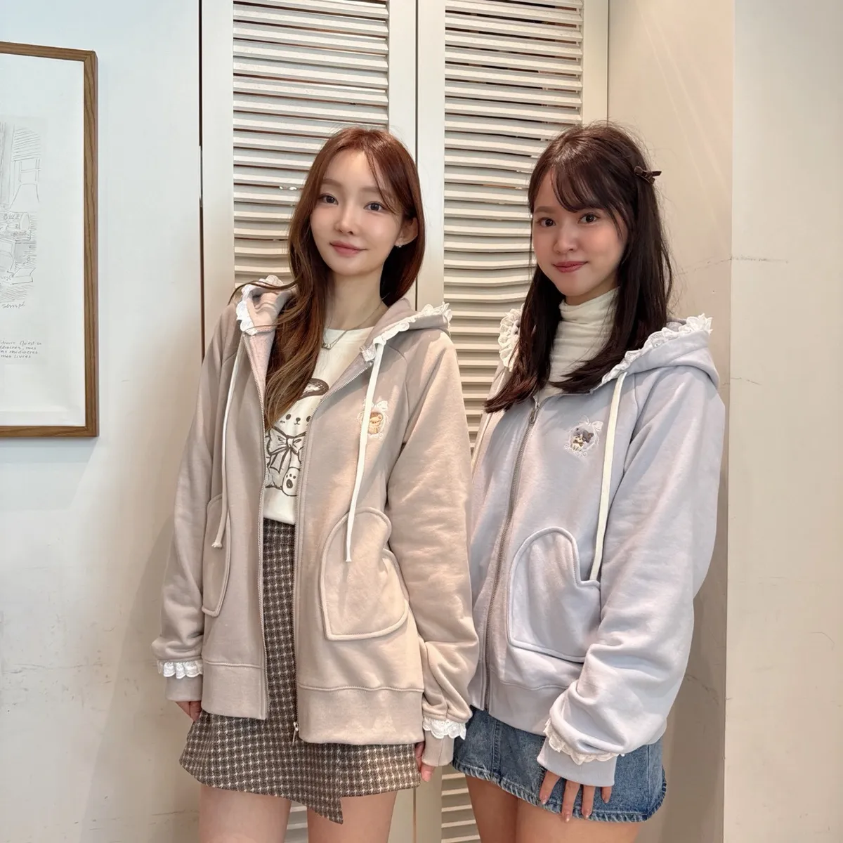 【Mekooo X FAVE】櫻桃蕾絲花邊米果熊刺繡落肩外套