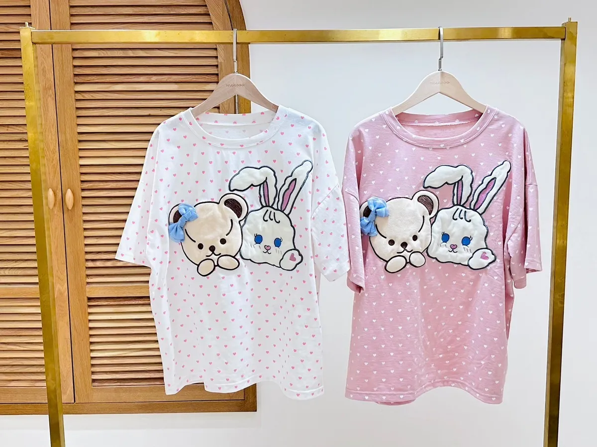滿版愛心米果熊&兔兔短袖上衣 410003