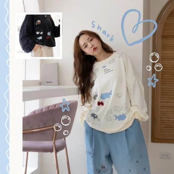 【libi se mi to】滿版小鯊魚印花長袖上衣440081