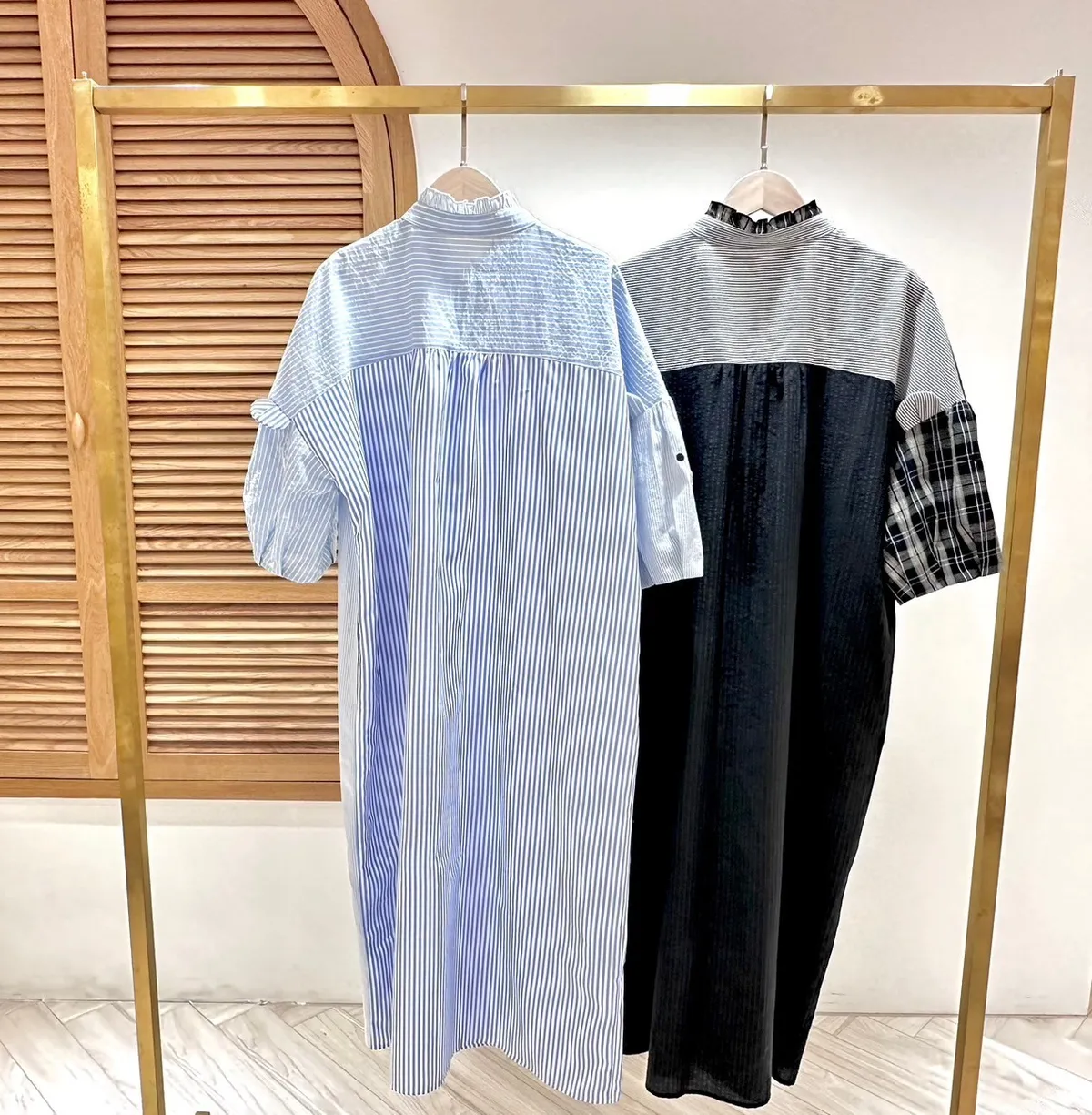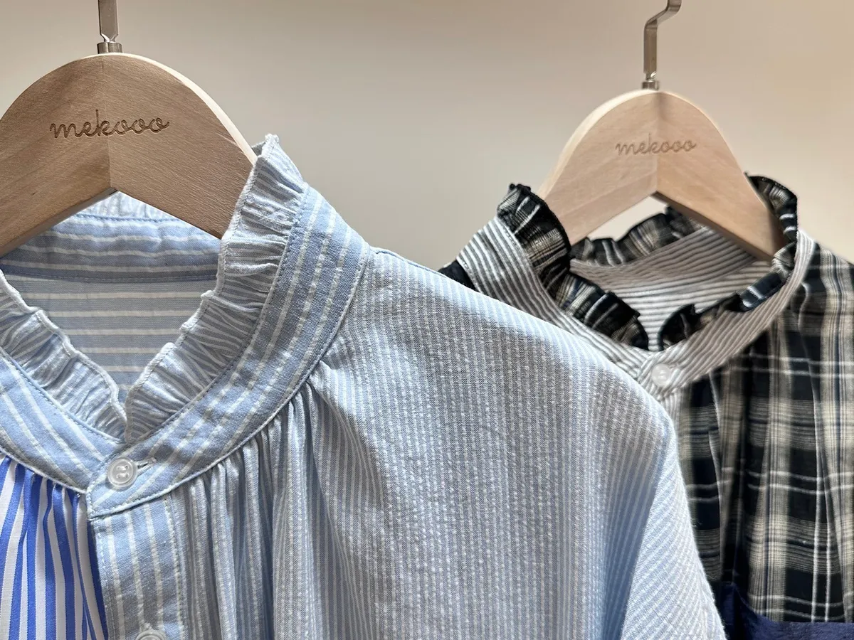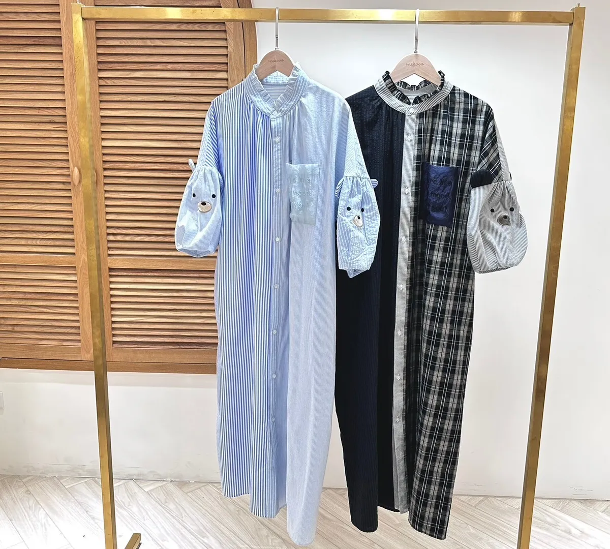 【libi se mi to】小熊撞色造型短袖拼接襯衫(長版) 450002