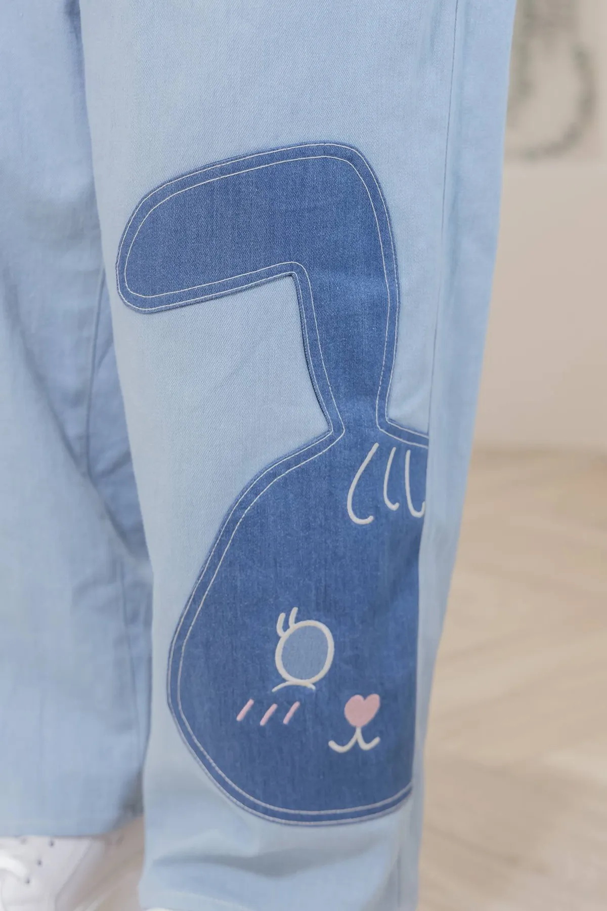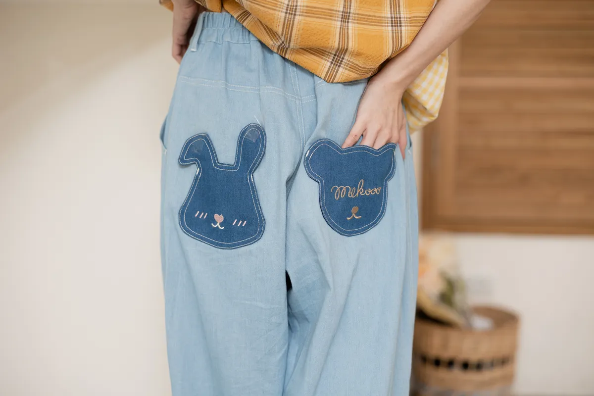 米果熊熊X雲朵兔兔造型直筒牛仔褲 450011