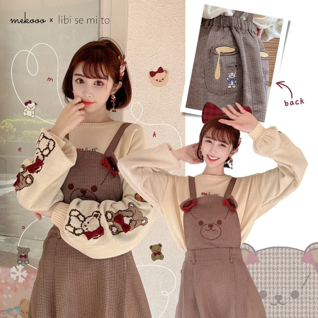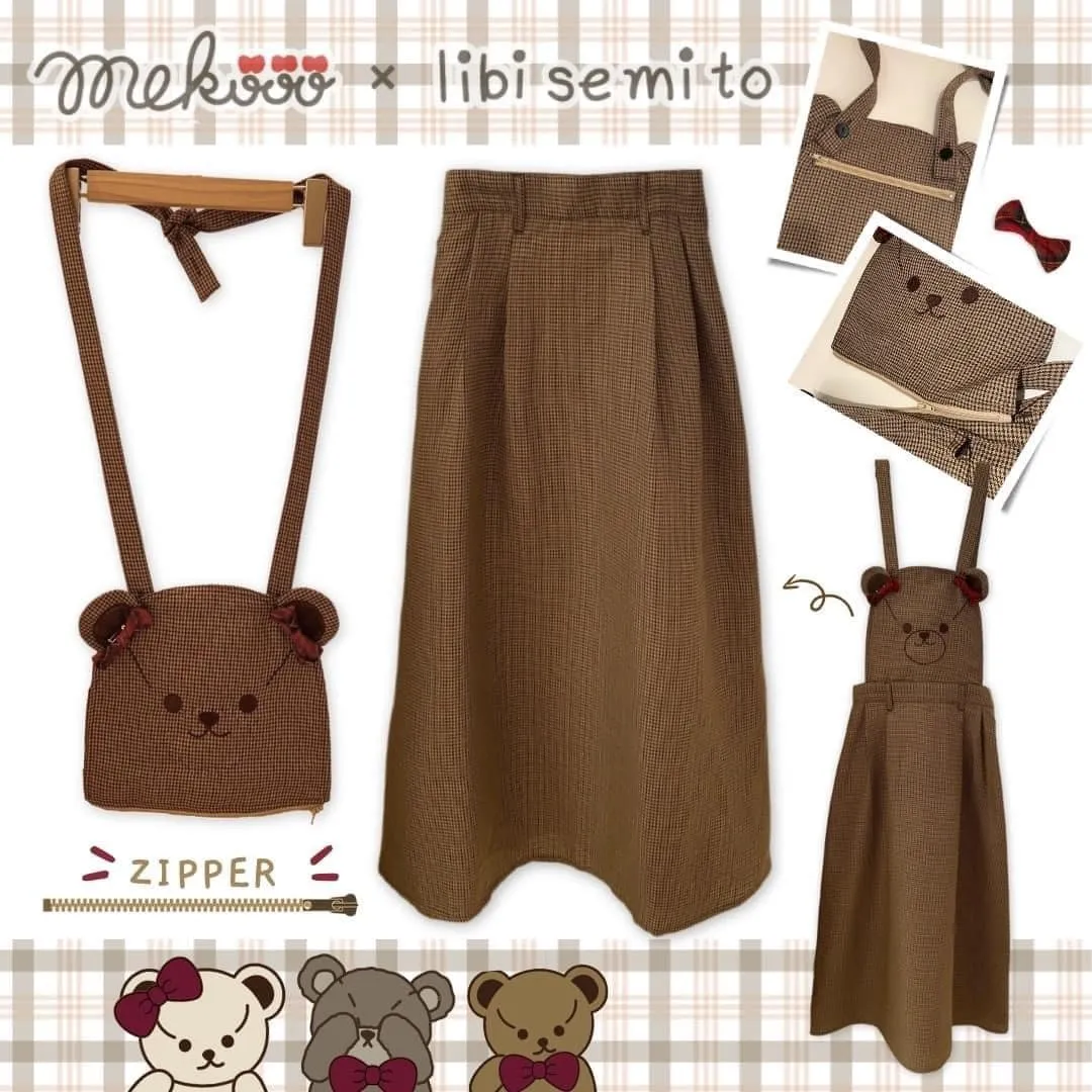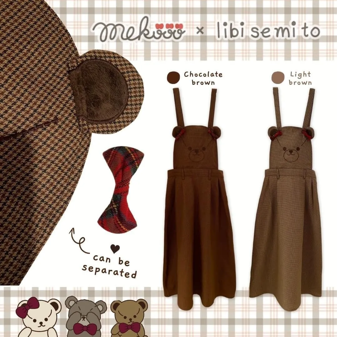 【Mekooo X libi se mi to】復古格紋小熊吊帶裙450028