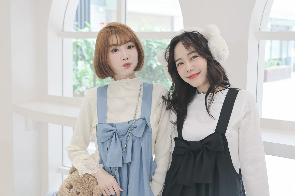 【libi se mi to】貓咪口袋蝴蝶結條紋吊帶褲450040