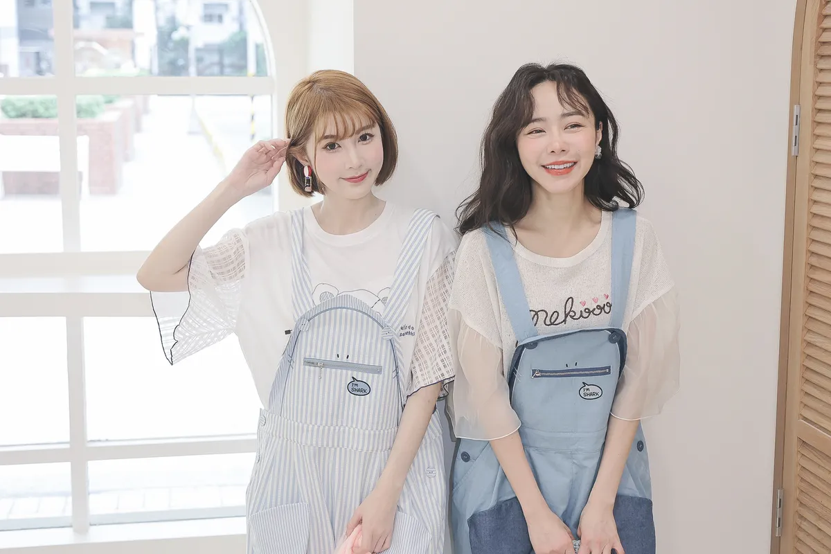 【Hi Hey Hooo】鯊魚造型尾巴牛仔/條紋吊帶褲45046、45047