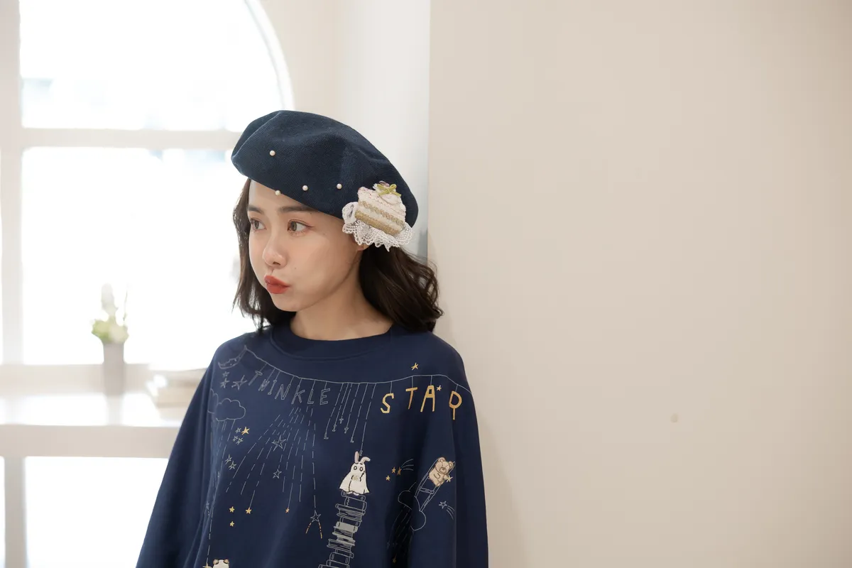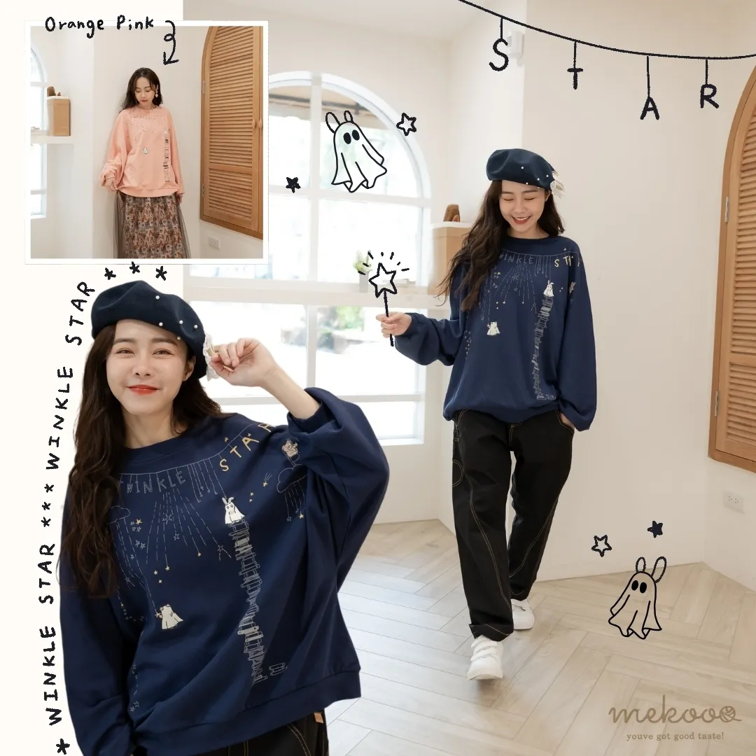 【libi se mi to】可愛夜空插畫刺繡長袖上衣490004