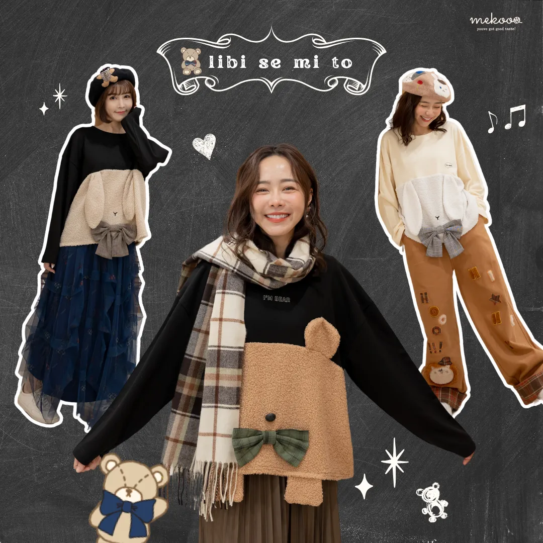 【libi se mi to】熊熊緞帶長袖上衣490011