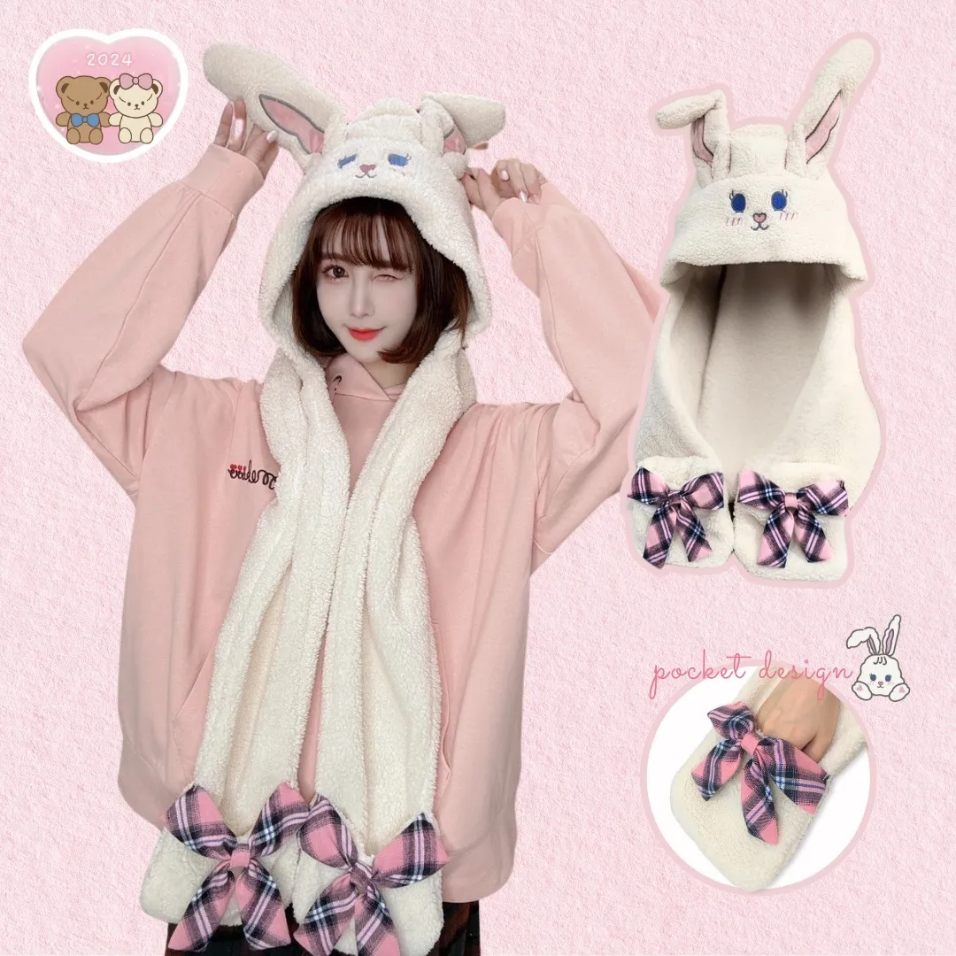 【Mekooo】米果熊/萌萌兔緞帶帽圍-490031、490032