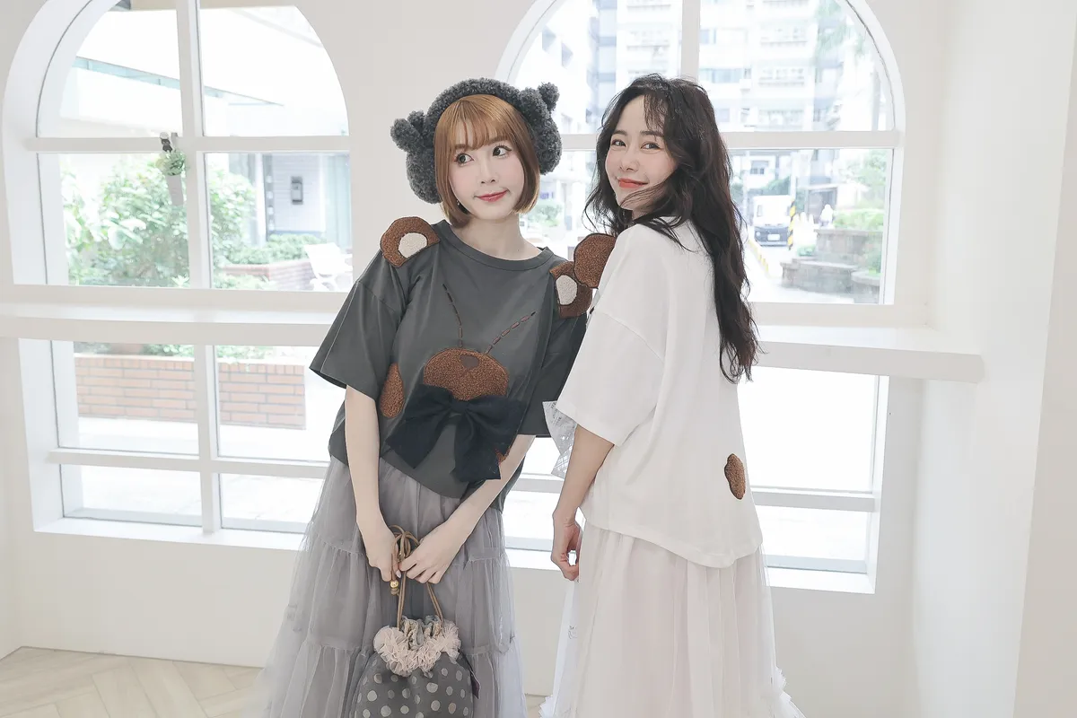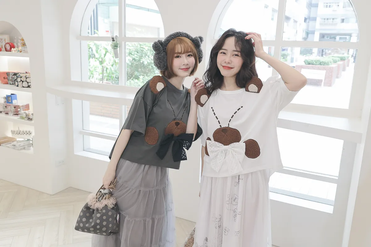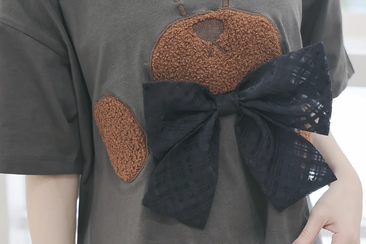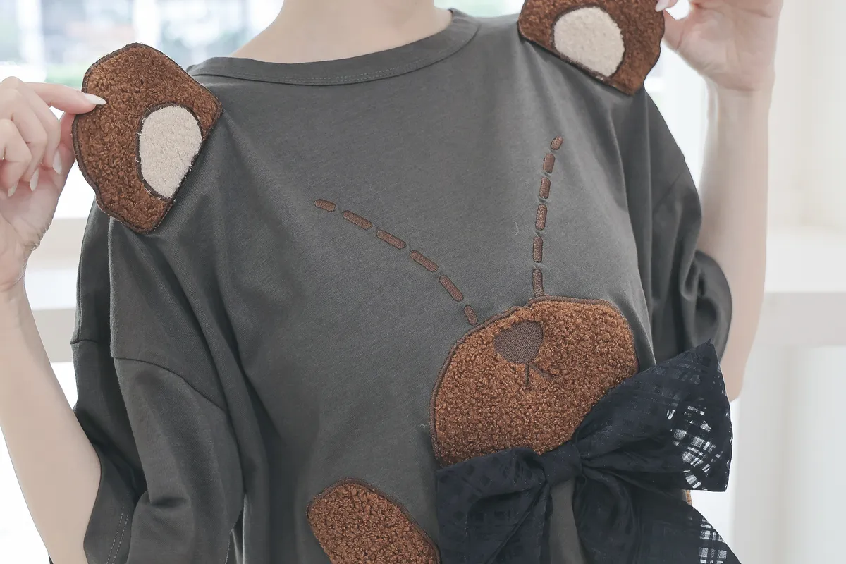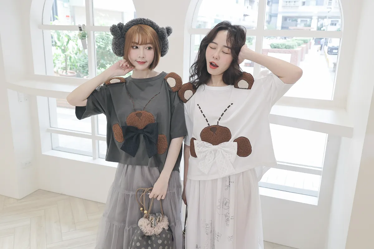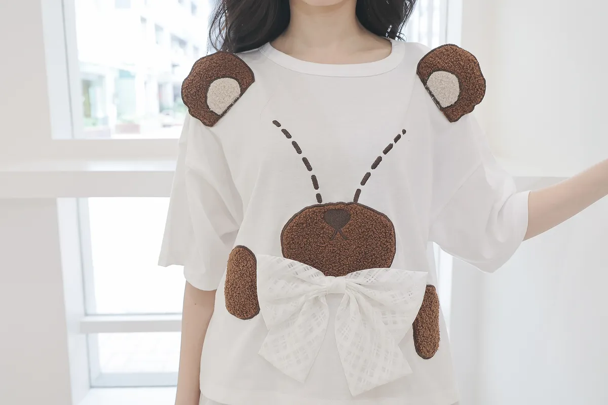 【libi se mi to】立體熊熊蝴蝶結短袖上衣490041