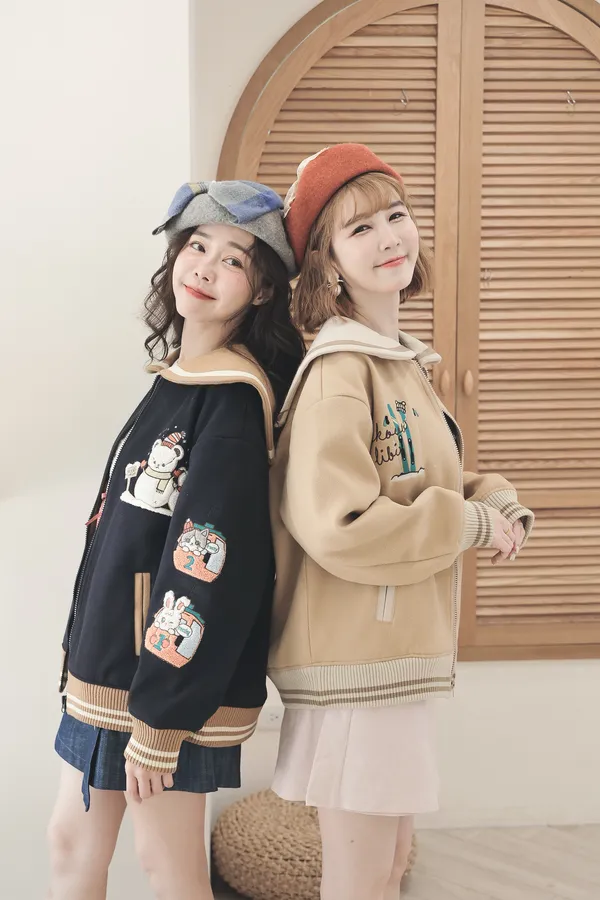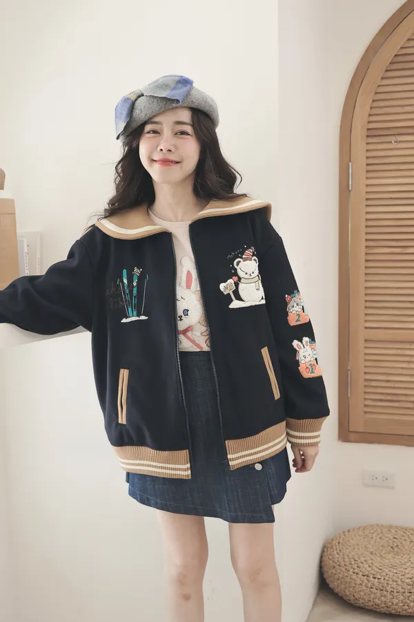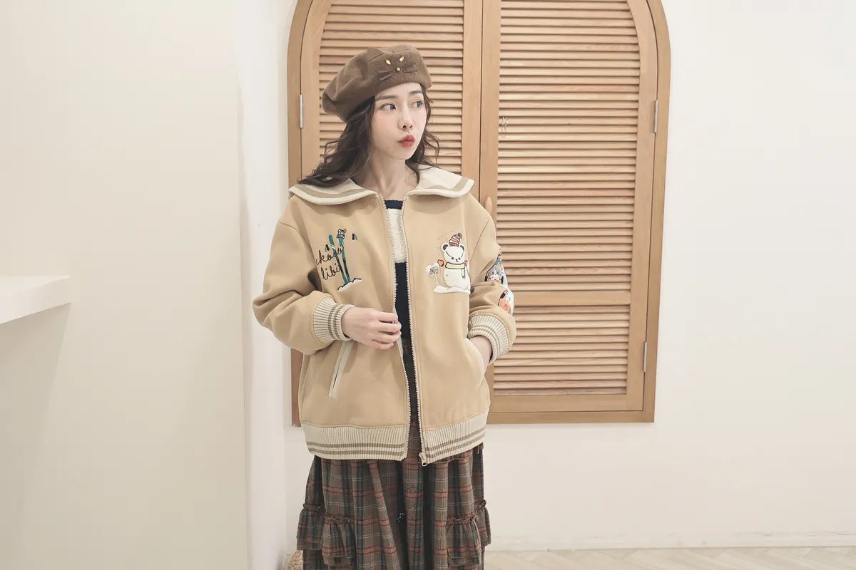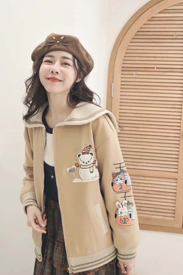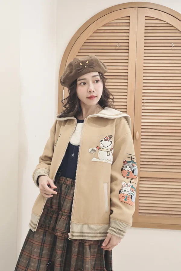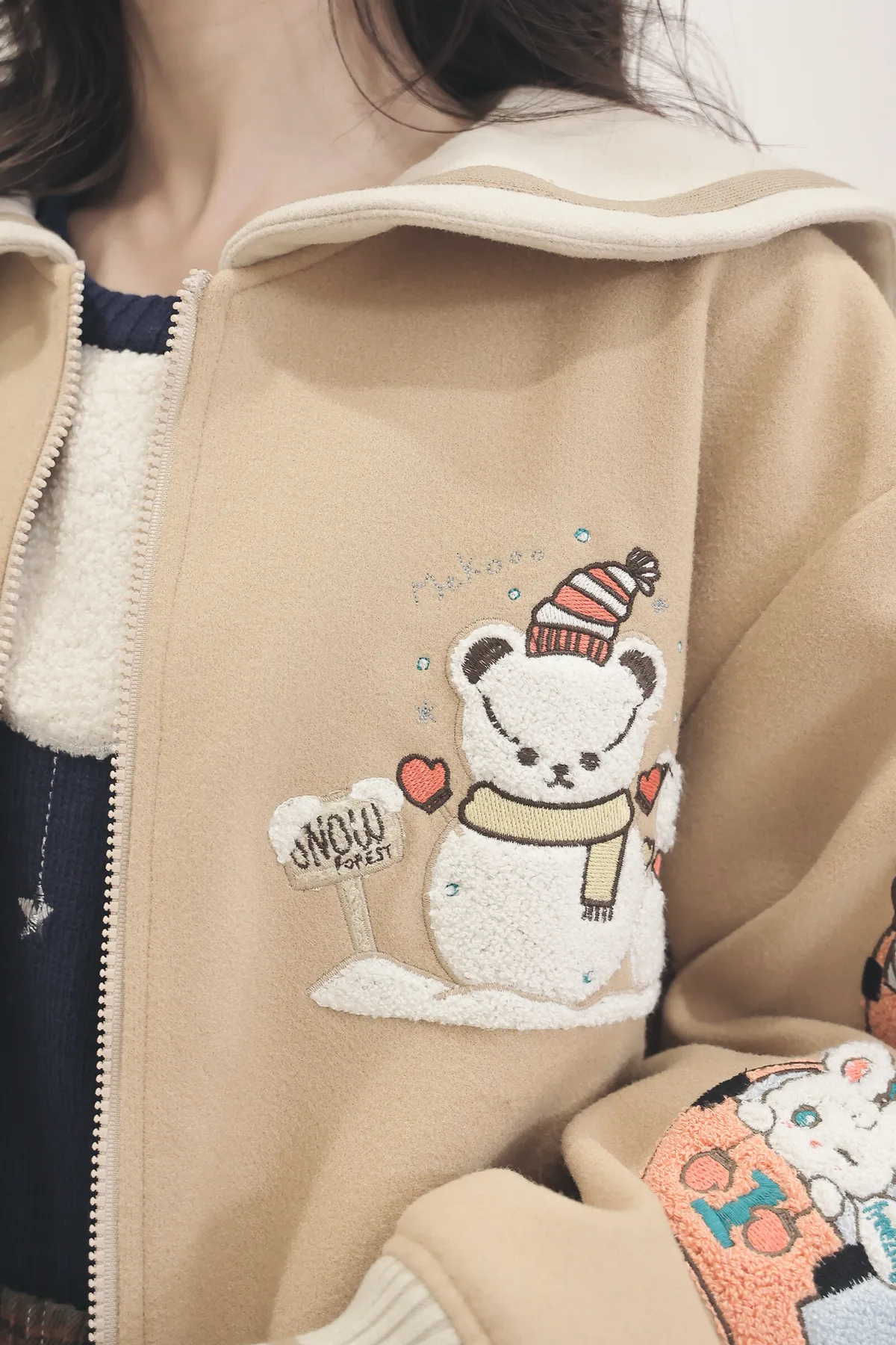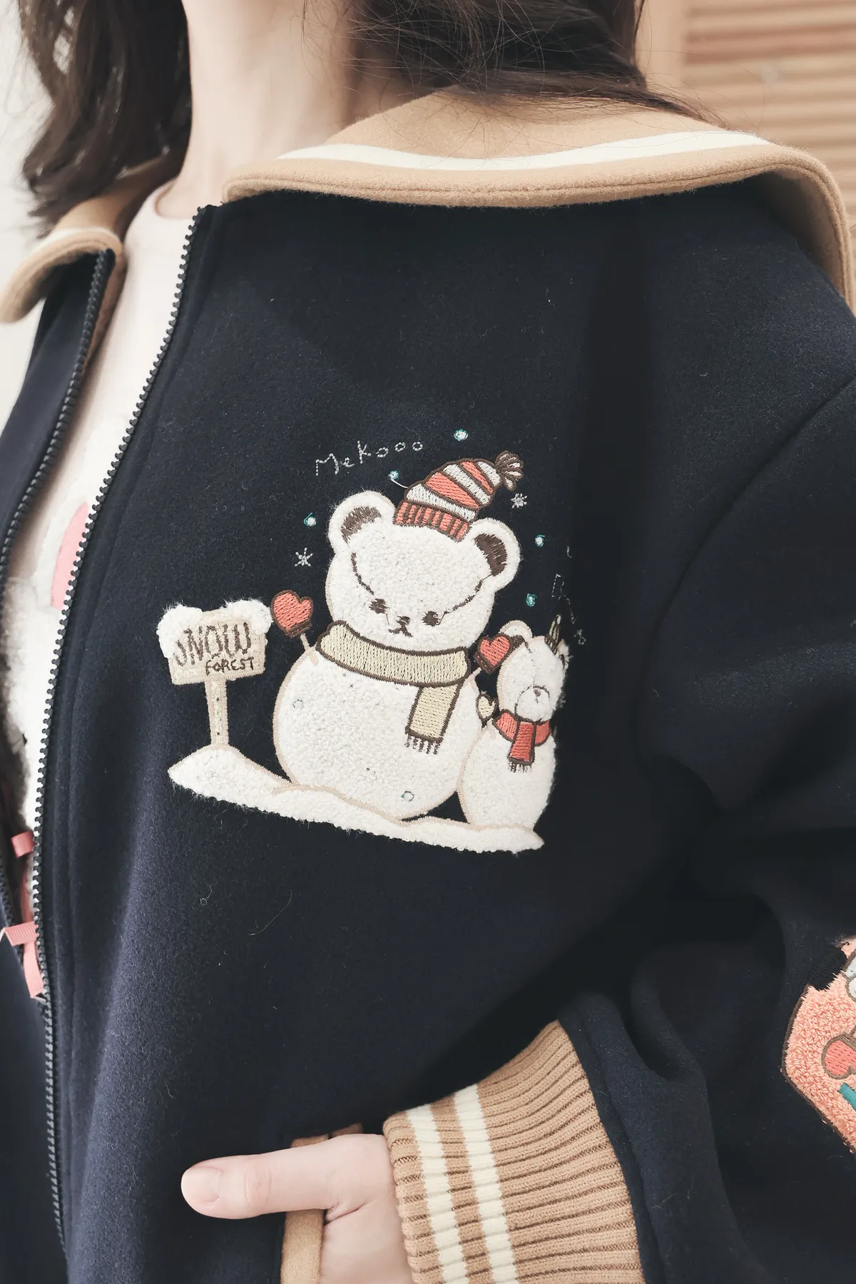 【Mekooo X Libi se mi to】米果熊雪人刺繡學院風外套