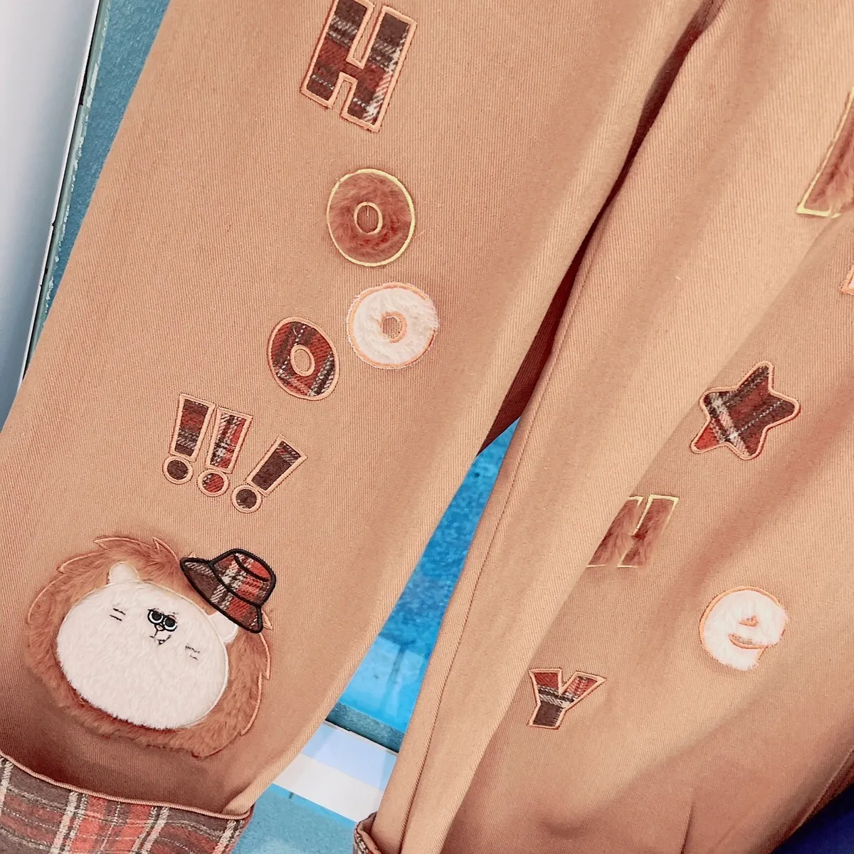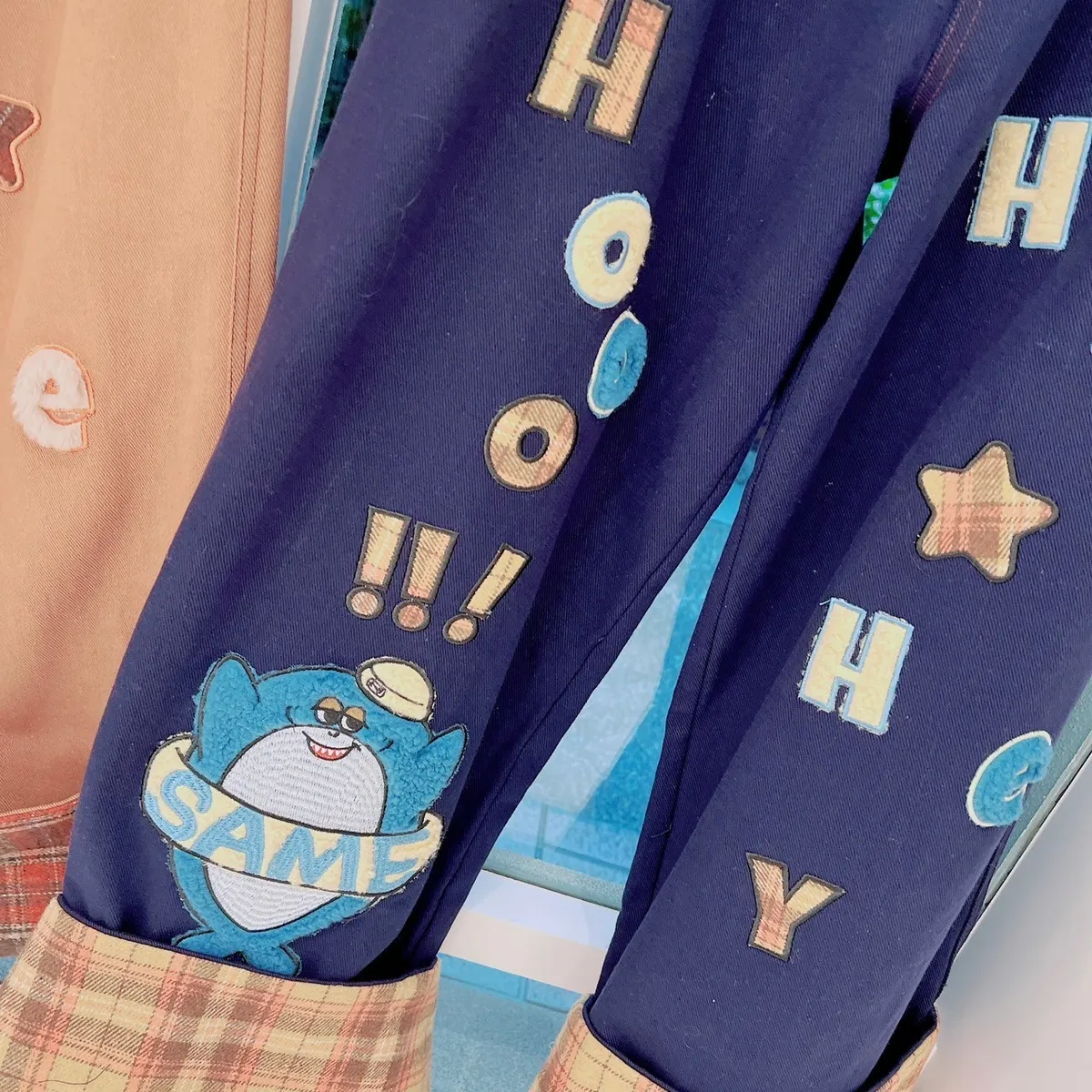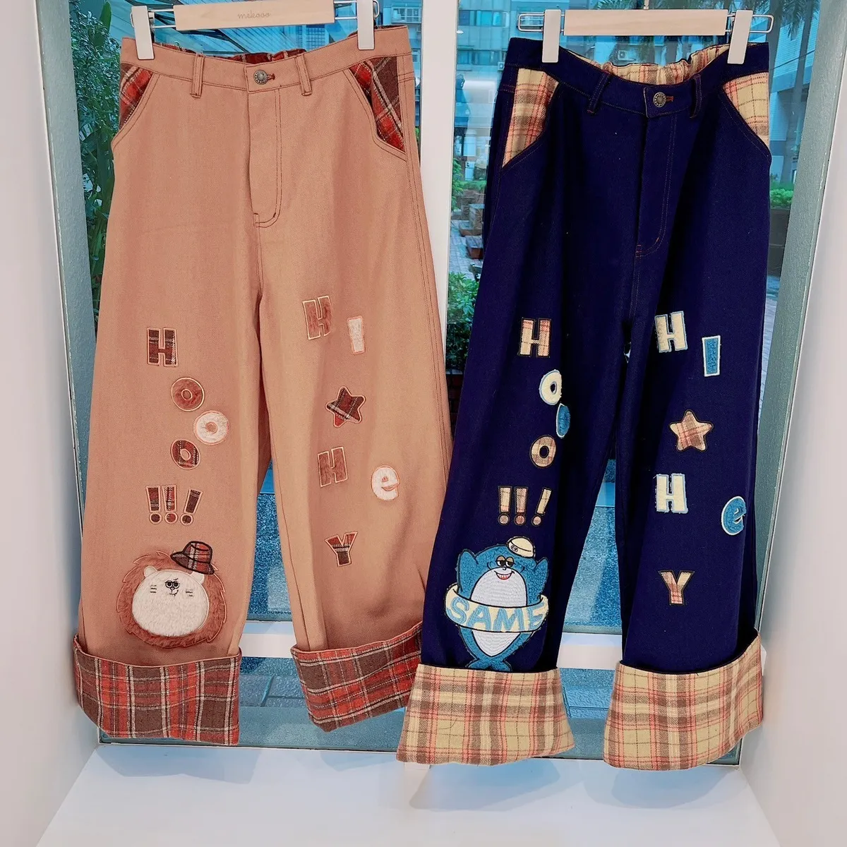 【HIHEYHOO】動物格紋拼接斜紋長褲H3240096